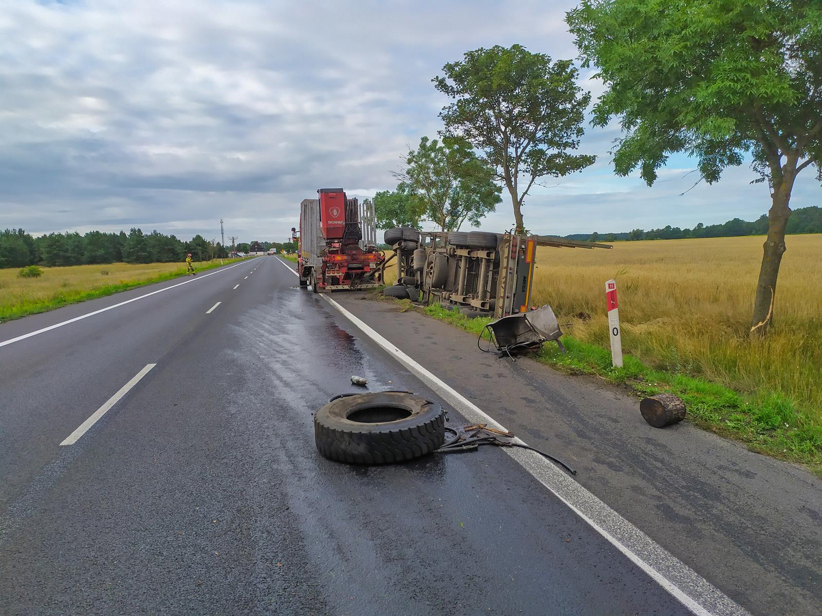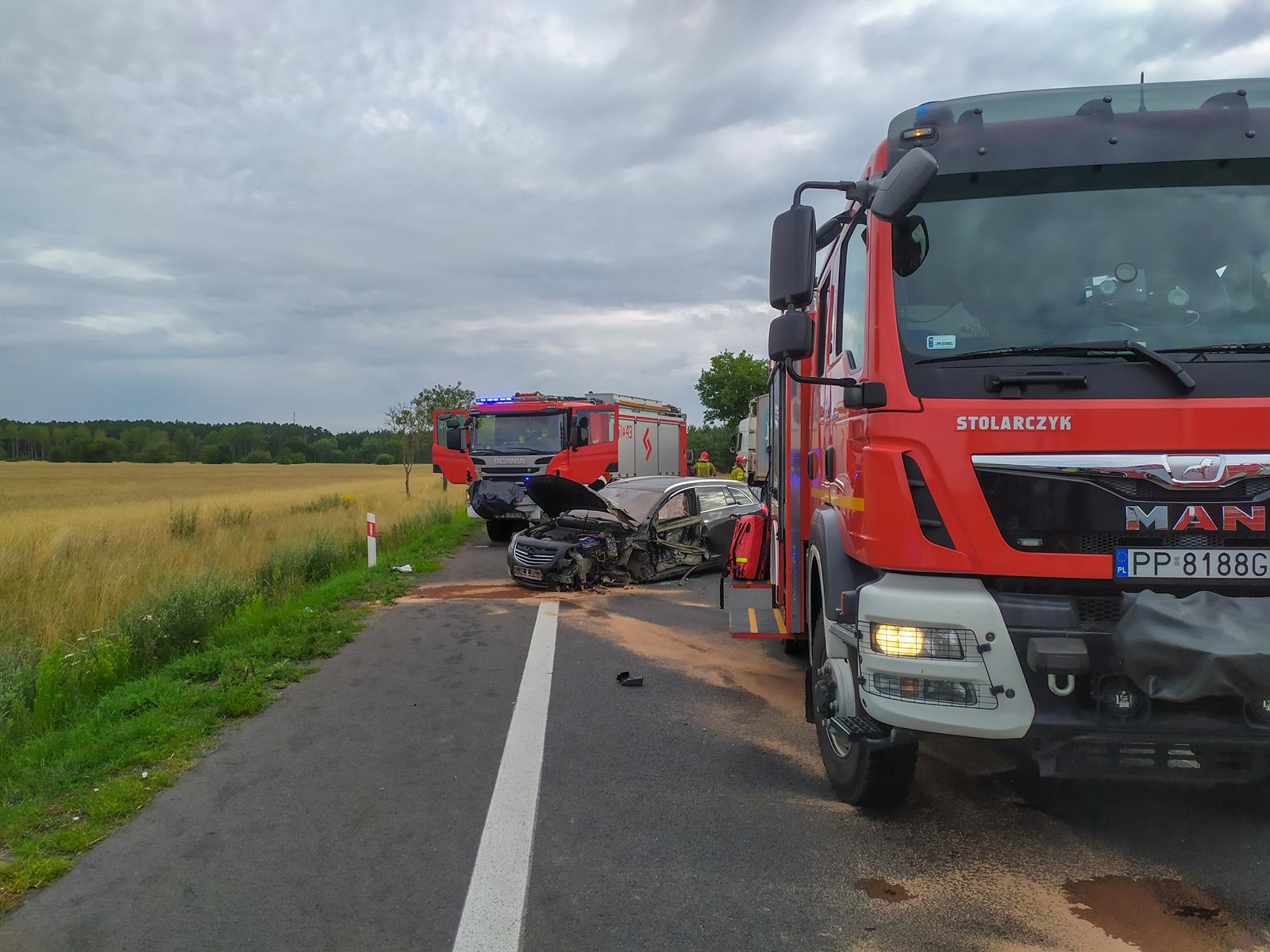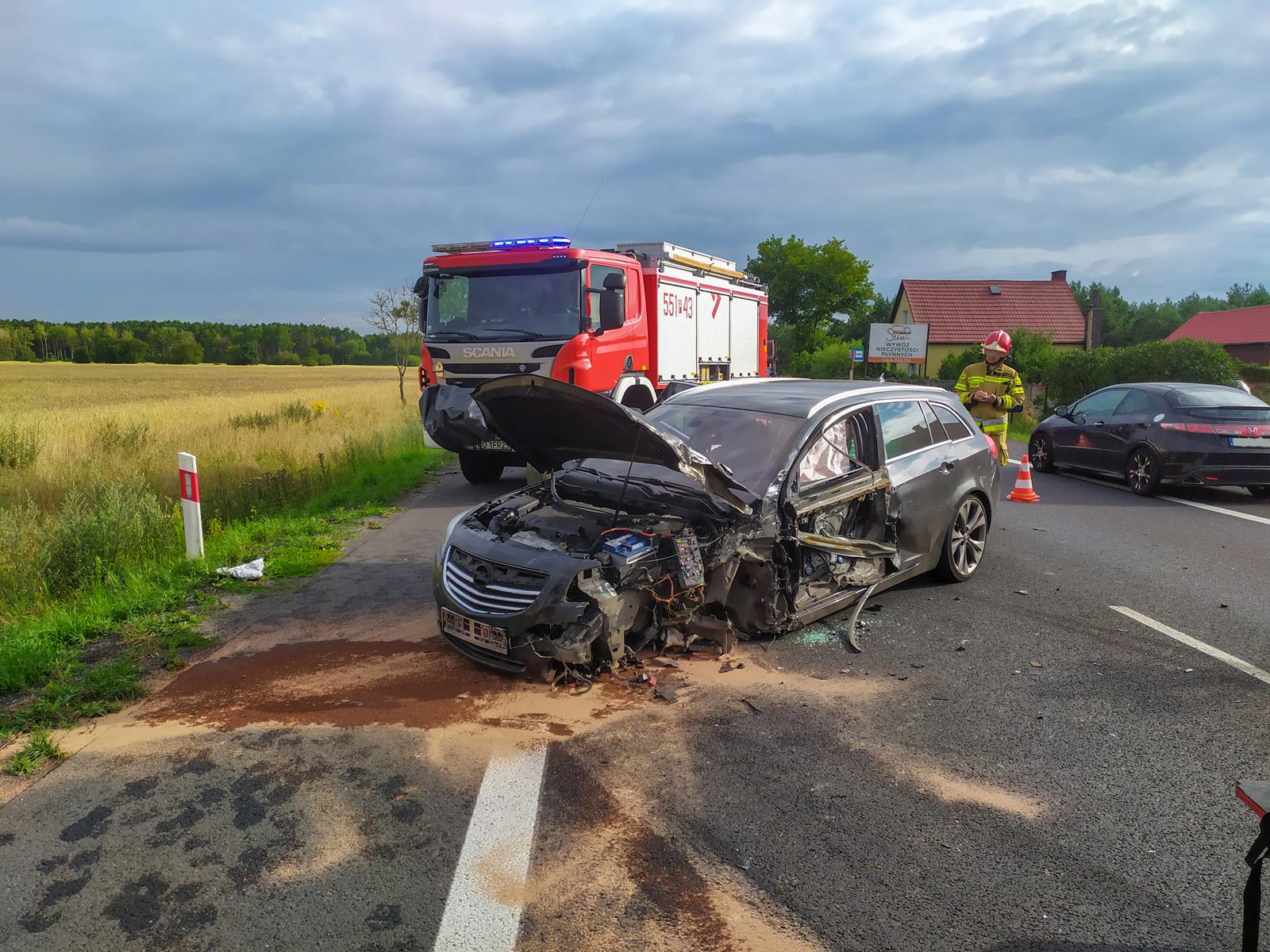 Samochód osobowy uderzył w bok samochodu ciężarowego. Samochodami podróżowały łącznie 4 osoby. Działania służb ratowniczych polegały na zabezpieczeniu miejsca zdarzenia oraz udzieleniu pierwszej pomocy uczestnikom zdarzenia. Wszyscy podróżujący zostali przebadani przez ratowników medycznych. W wyniku zdarzenia doszło do wycieku oleju hydraulicznego, który zanieczyścił jezdnię. Na miejsce wezwano zarządcę drogi w celu usunięcia zagrożenia.