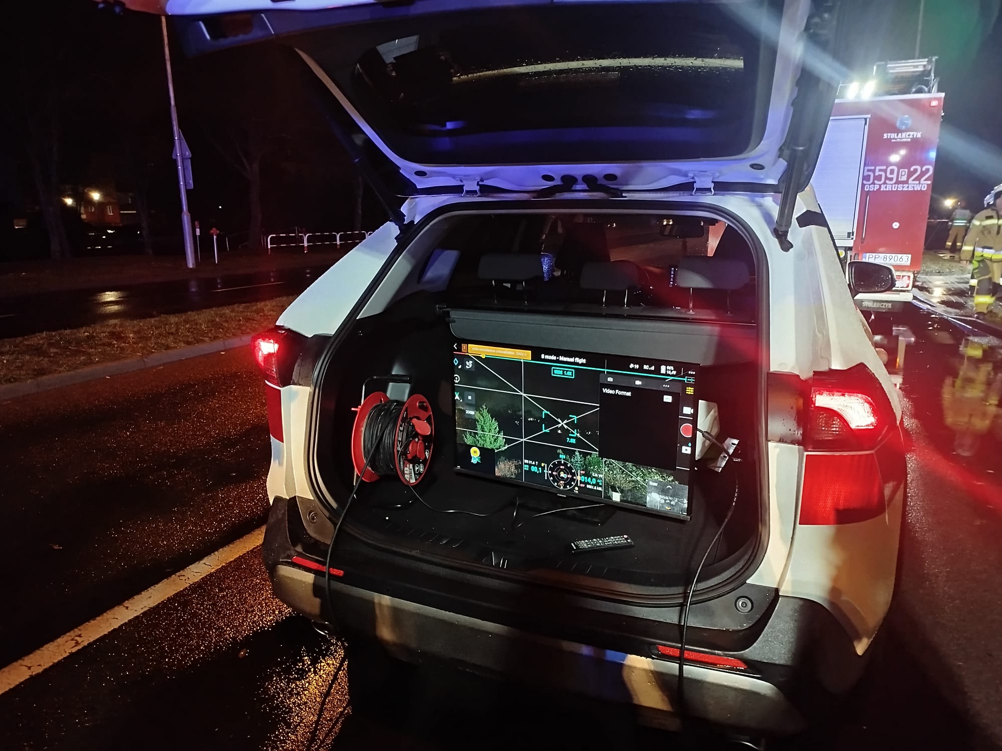 Z uwagi na brak możliwości prawidłowej oceny stateczności budynku a także duże prawdopodobieństwo zawalenia się budynku odstąpiono od przeszukania wnętrza obiektu, czego dalej dokonano za pomocą bezzałogowego statku powietrznego z kamerą termowizyjną.