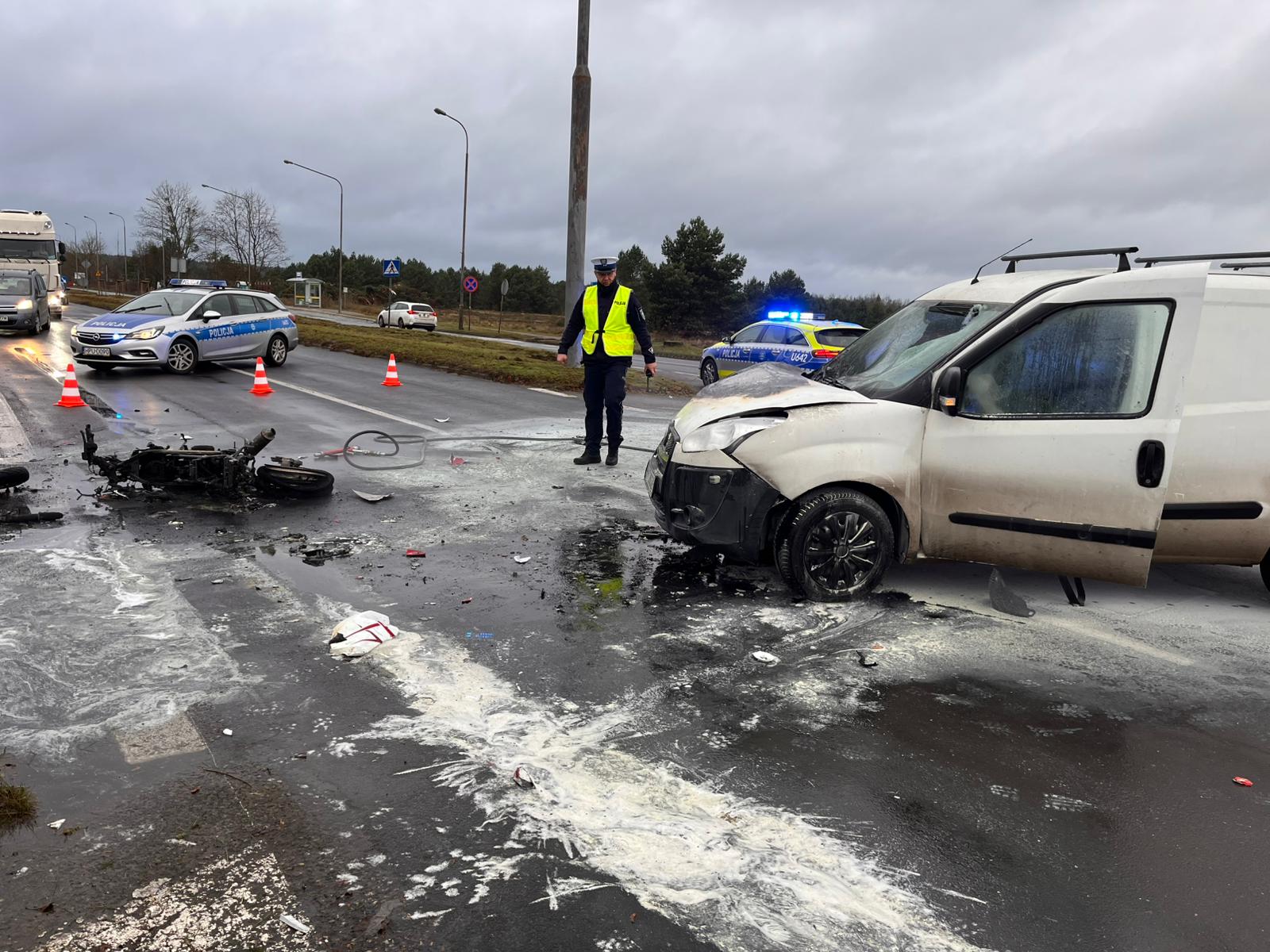 W wyniku zdarzenia dwie osoby zostały poszkodowane, z czego jeden – kierowca motocykla, z obrażeniami ciała przetransportowany został do szpitala, celem dalszej diagnostyki.