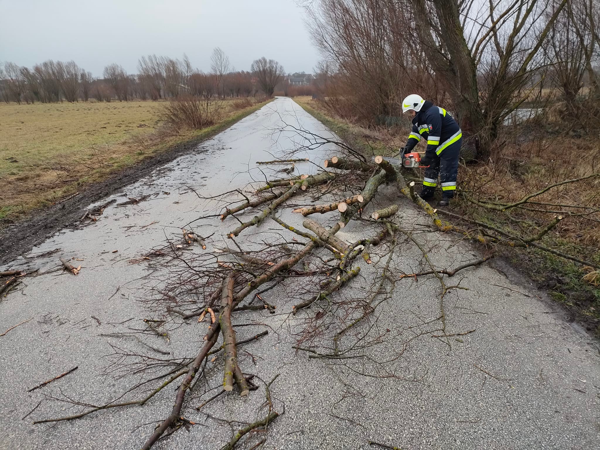 Działania strażaków we wspominanych zdarzeniach polegały na zabezpieczaniu miejsca zdarzenia oraz zabezpieczaniu uszkodzonych budynków przed deszczem oraz śniegiem towarzyszącym wiatrom. Strażacy usuwali także powalone drzewa przywracając ruch na drogach oraz eliminowali zagrożenie dla linii energetycznych usuwając zagrażające konary.