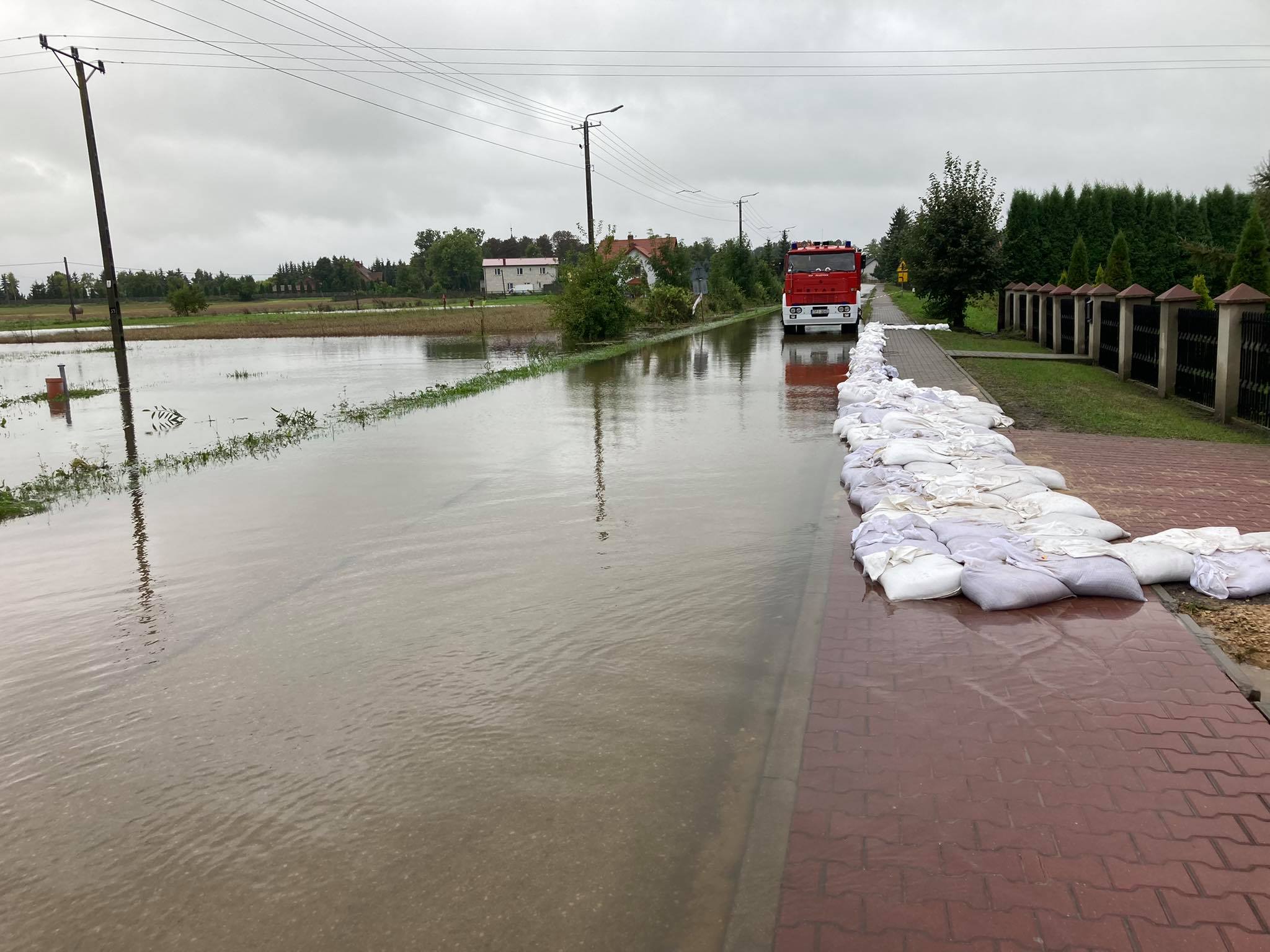 i pomieszczeń oraz zabezpieczeniu budynków przed zalaniem. W tym celu wykonywano specjalne opaski z worków wypełnionych piaskiem. Strażacy wspomagali także czynności mające na celu udrożnienie obiektów hydrotechnicznych, co ułatwiało ujście dużej ilości wody do cieków wodnych.