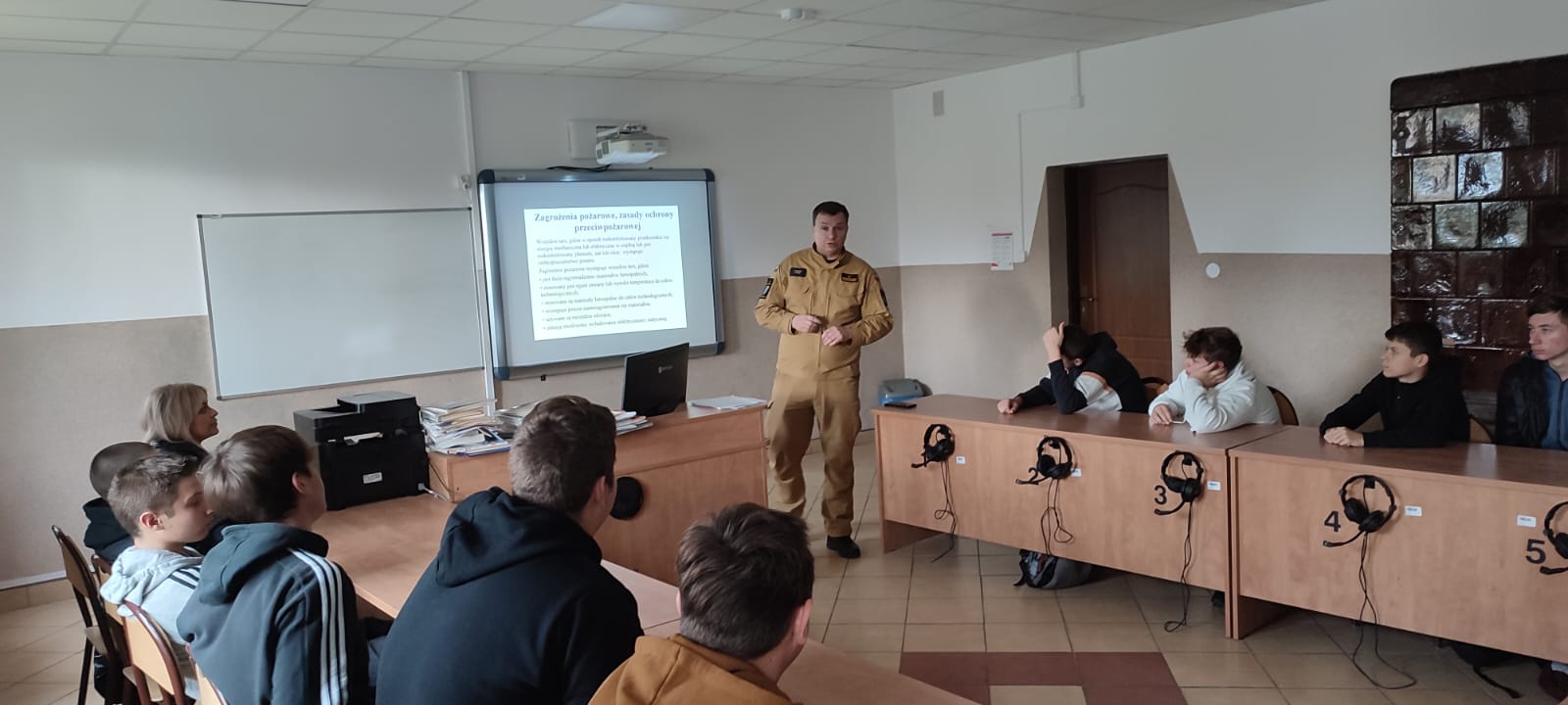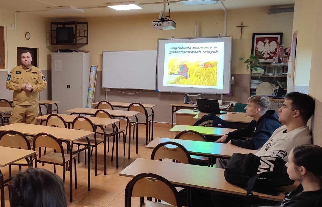 W dniach od 20 do 23 listopada br. odbyły się spotkania edukacyjne dla młodzieży uczącej się w Zespole Szkół Centrum Kształcenia Rolniczego w Chrobrzu, w powiecie pińczowskim. Organizatorem przedsięwzięcia była Okręgowa Inspekcja Pracy w Kielcach. Strażacy z Komendy Powiatowej PSP w Pińczowie przeprowadzili wykłady na temat zagrożeń pożarowych w gospodarstwach rolnych i profilaktyki w tym zakresie. W trakcie spotkań poruszono również zagadnienia związane z pracą strażaków, odbył się pokaz sprzętu ratowniczo – gaśniczego i szeroko omówiono zagadnienia związane z tlenkiem węgla, wpisując się w trwającą kampanię „Czujka na straży Twojego bezpieczeństwa”. Działania edukacyjne oprócz straży pożarnej prowadziły m.in.: Izba Rolnicza w Pińczowie, Izba Rolnicza w Sandomierzu, Oddział Regionalny Kasy Rolniczego Ubezpieczenia Społecznego w Kielcach, Oddział Terenowy Kasy Rolniczego Ubezpieczenia Społecznego w Pińczowie, Agencja Restrukturyzacji i Modernizacji Rolnictwa w Kielcach, Wyższa Szkoła Ekonomii i Prawa w Kielcach, Ośrodek Doradztwa Rolniczego w Pińczowie, Świętokrzyskie Centrum Ratownictwa Medycznego i Transportu Sanitarnego w Kielcach, oddział w Pińczowie. W spotkaniu podsumowującym akademię uczestniczył Komendant Powiatowy PSP w Pińczowie st. bryg. Jarosław Huk.