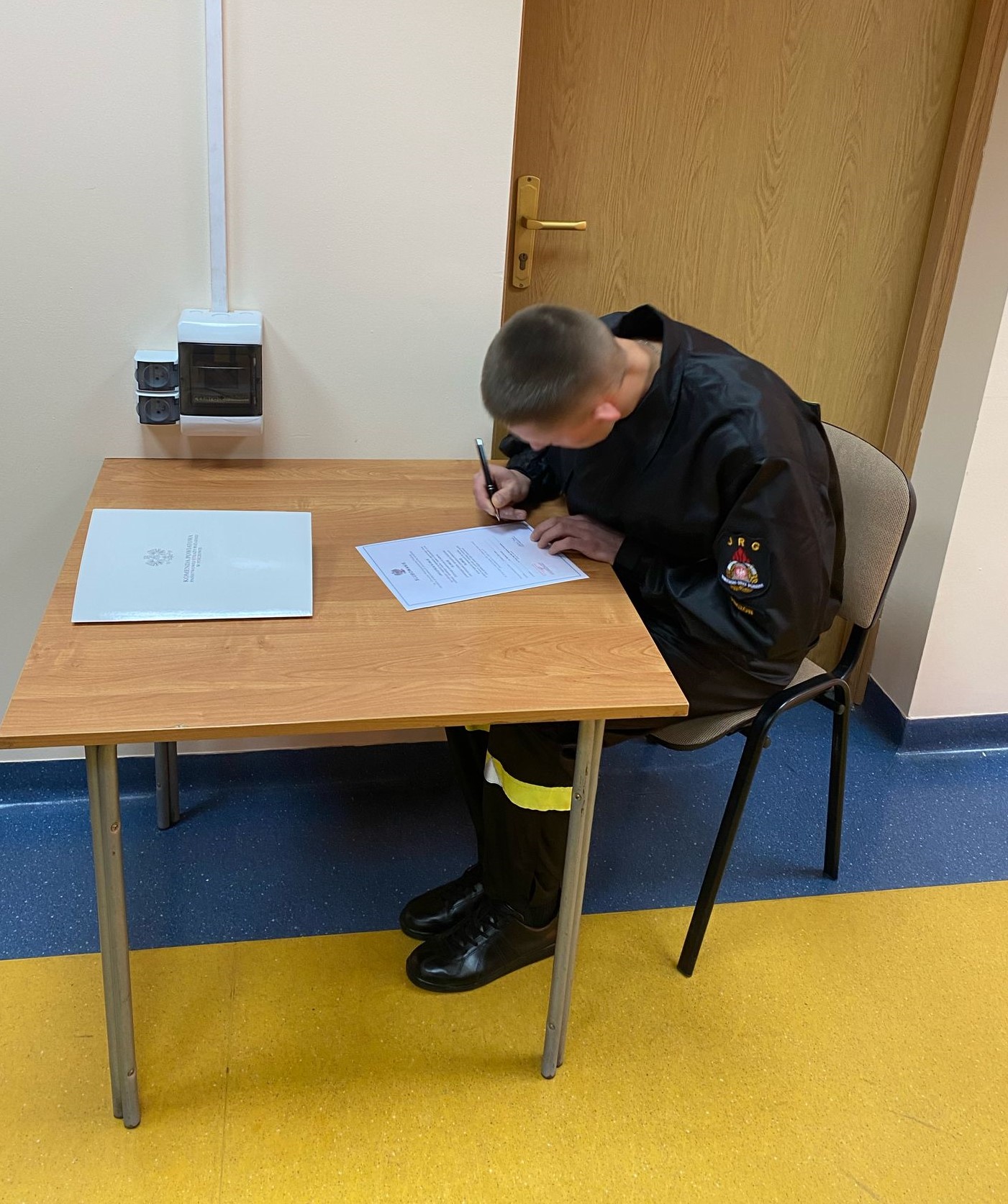 “Ja, obywatel Rzeczypospolitej Polskiej, świadom podejmowanych obowiązków strażaka, uroczyście ślubuję być ofiarnym i mężnym w ratowaniu zagrożonego życia ludzkiego i wszelkiego mienia – nawet z narażeniem życia. Wykonując powierzone mi zadania, ślubuję przestrzegać prawa, dyscypliny służbowej oraz wykonywać polecenia przełożonych. Ślubuję strzec tajemnic związanych ze służbą, a także honoru, godności i dobrego imienia służby oraz przestrzegać zasad etyki zawodowej.”.