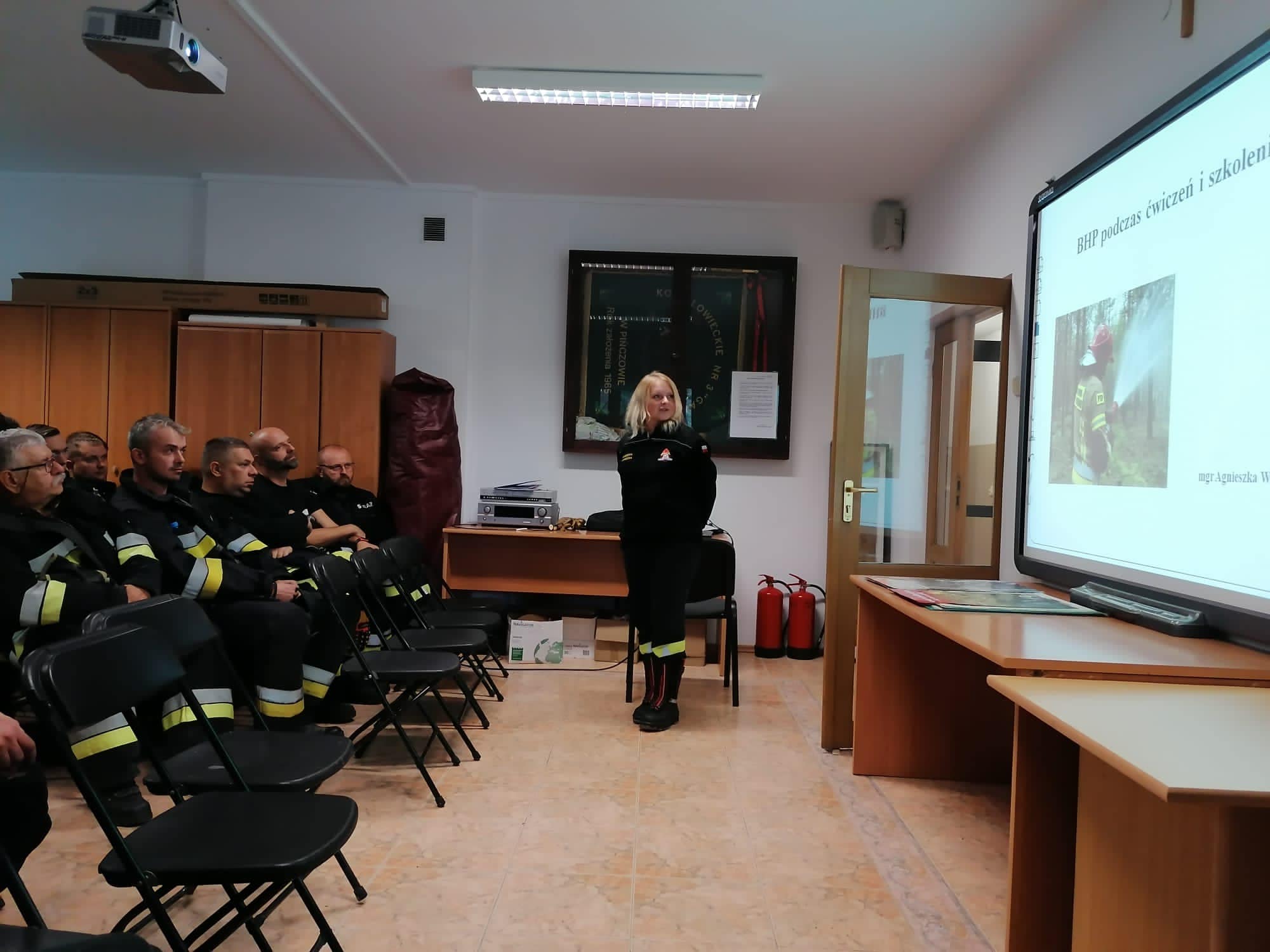 Po inspekcji w sali wykładowej Szkółki Leśnej w Michałowie odbyło się szkolenie dla strażaków uczestniczących w manewrach. Tematyką swą obejmowało bezpieczeństwo