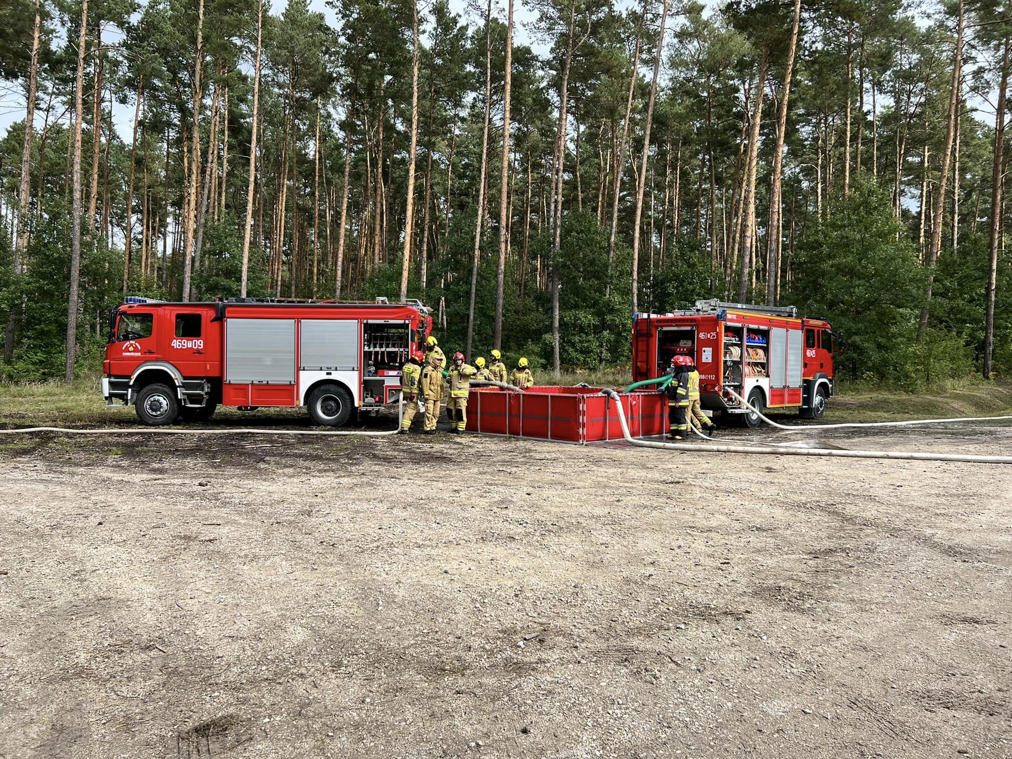 Założenie części praktycznej ćwiczeń polegało na ugaszeniu wielkopowierzchniowego pożaru lasu, do którego realizacji niezbędna była budowa magistrali wodnej.