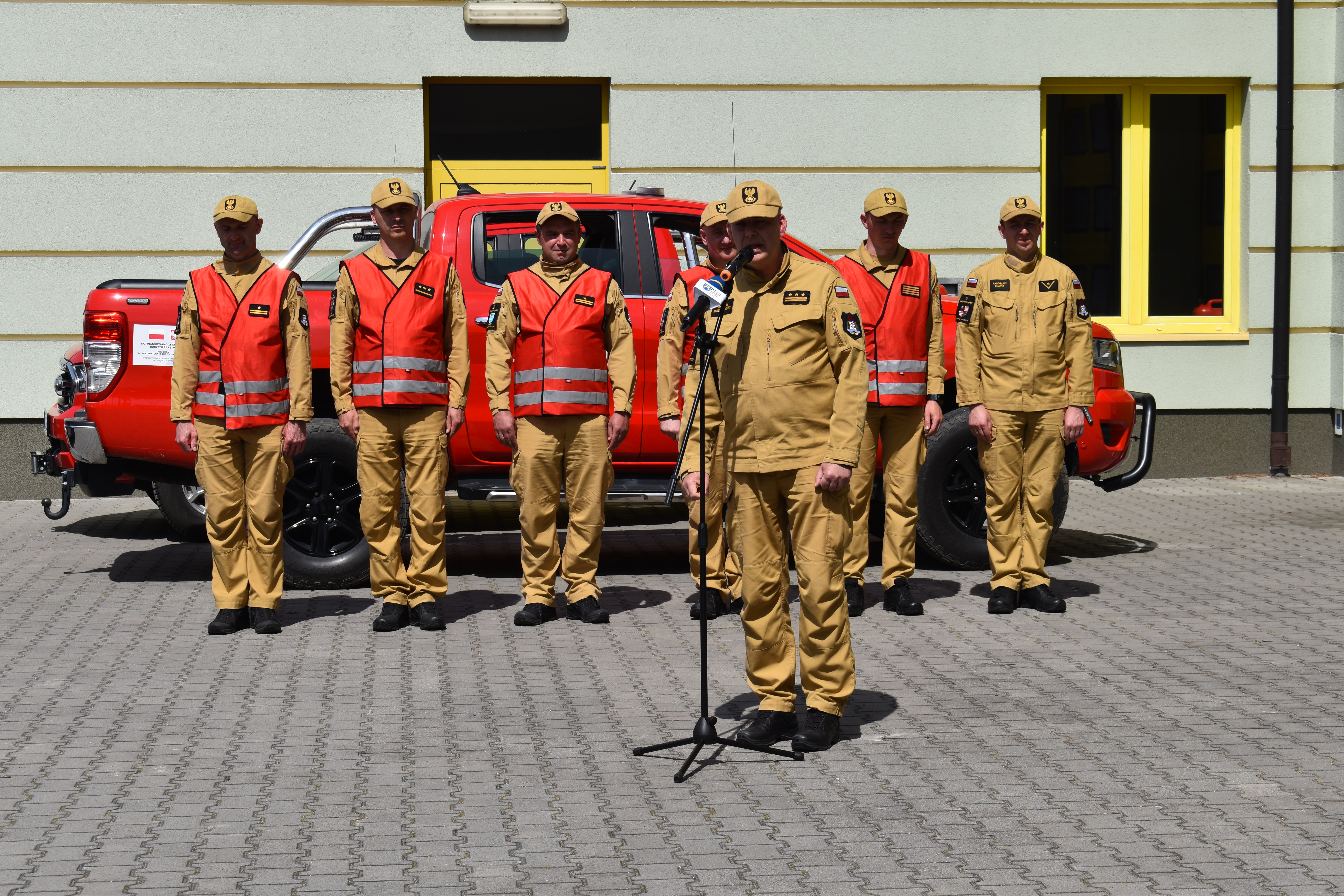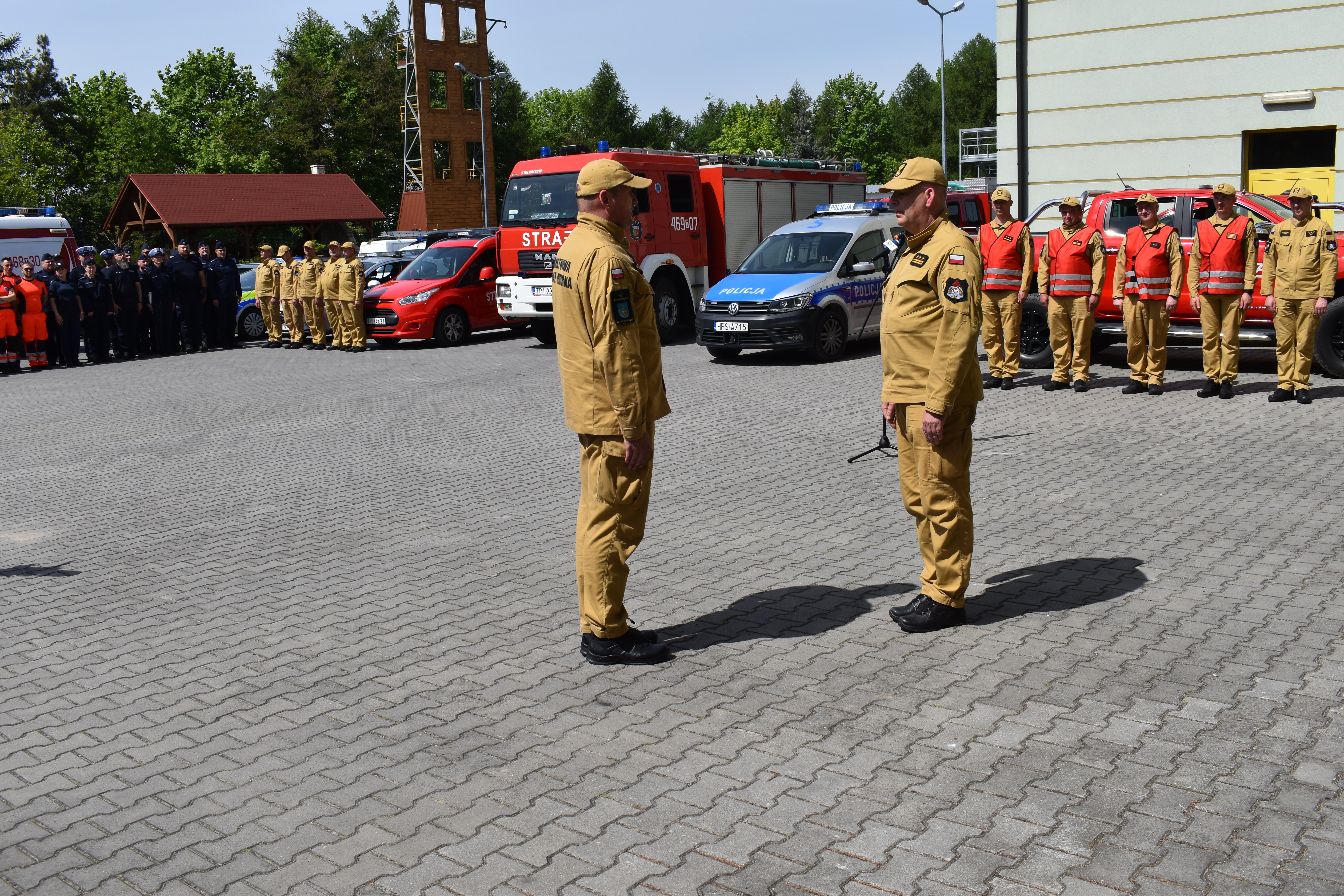 w Pińczowie mł. bryg. Mariusz Fodymski. Komendanci wysoko ocenili przygotowanie jednostek ochrony przeciwpożarowej do prowadzenia ww. działań oraz podziękowali