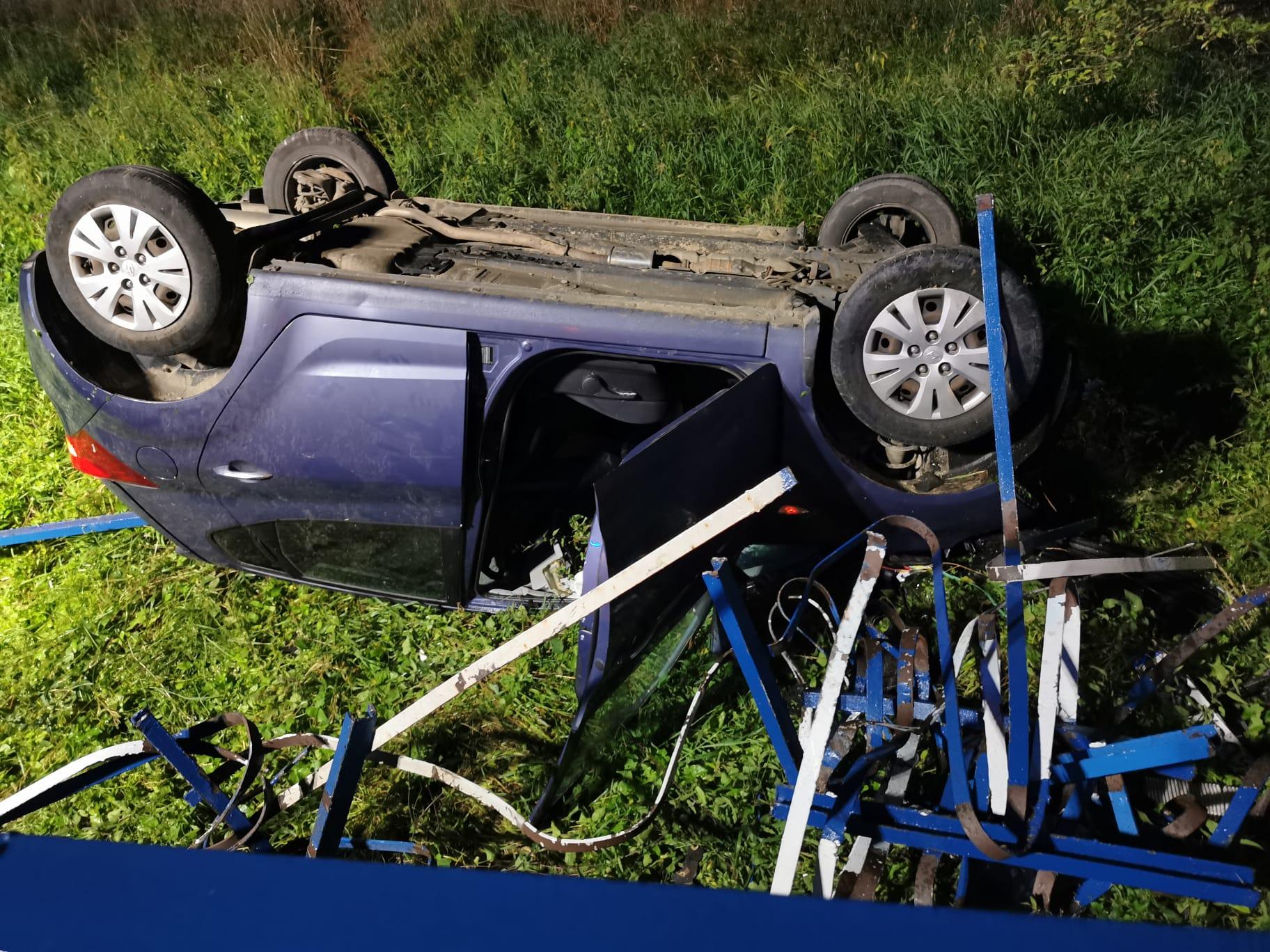 Po przybyciu na miejsce zdarzenia Kierujący Działaniem Ratowniczym ustalił, iż pojazd osobowy marki Hyundai uderzył w barierę ochronną, a następnie zatrzymał się w przydrożnym rowie w pozycji na dachu. Pojazdem podróżowała jedna osoba, która opuściła go przed przybyciem jednostek ochrony przeciwpożarowej.