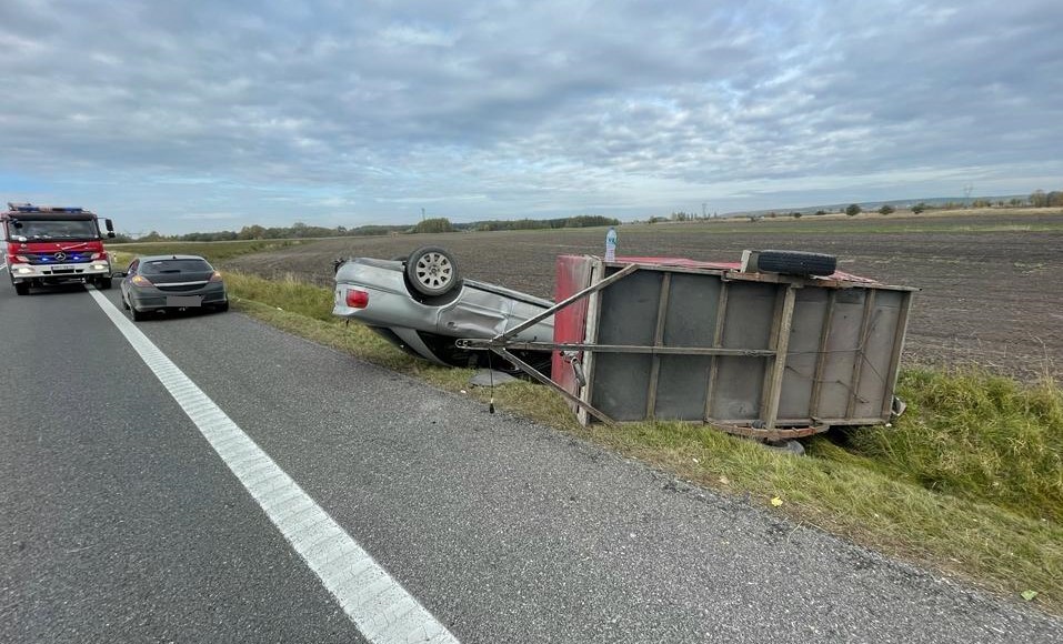 Po przybyciu na miejsce zdarzenia Kierujący Działaniem Ratowniczym ustalił, iż doszło do dachowania pojazdu osobowego Audi A4 wraz z przyczepką. Kierujący ww. pojazdem opuścił go samodzielnie oraz nie wymagał udzielenia mu pomocy medycznej.
