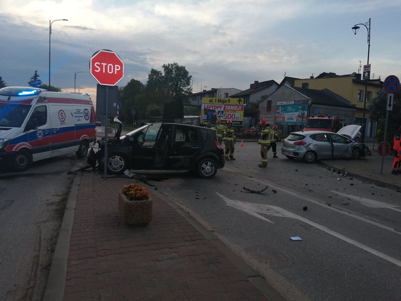 i Renault Scenic. W wyniku zdarzenia poszkodowane zostały dwie osoby, które na mocy decyzji Państwowego Ratownictwa Medycznego zabrano do szpitala Powiatowego w Busku -Zdroju.
