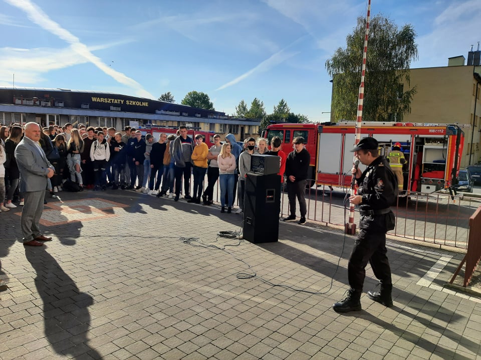 We wrześniu i październiku 2021 r. pińczowscy strażacy uczestniczyli łącznie w siedemnastu próbnych ewakuacjach placówek oświatowych na terenie powiatu pińczowskiego. Poza sprawdzeniem poprawności przeprowadzania ewakuacji przez kierownictwo placówek spotkania z młodzieżą były doskonałą okazją do rozmów o szeroko rozumianym bezpieczeństwie.