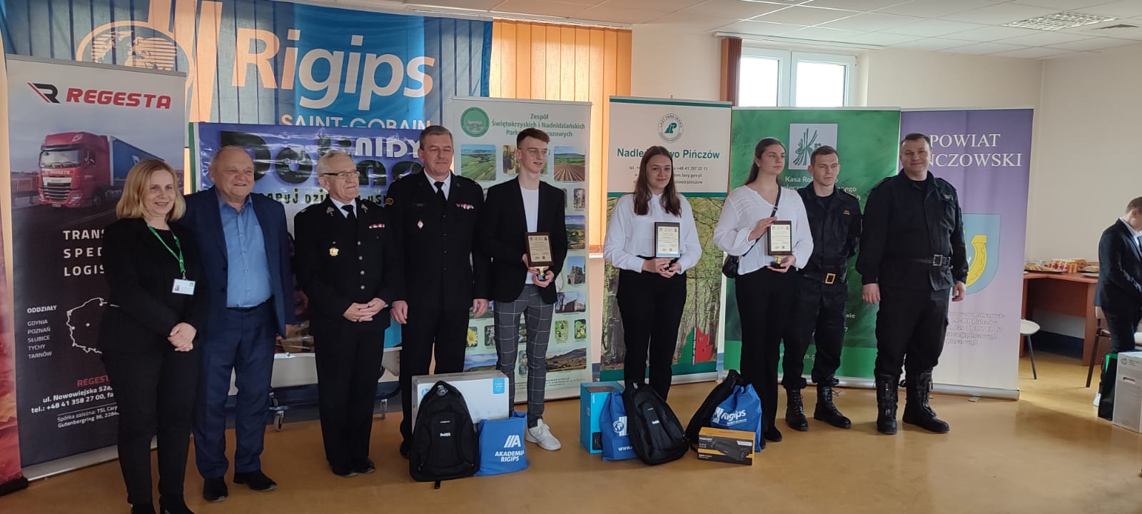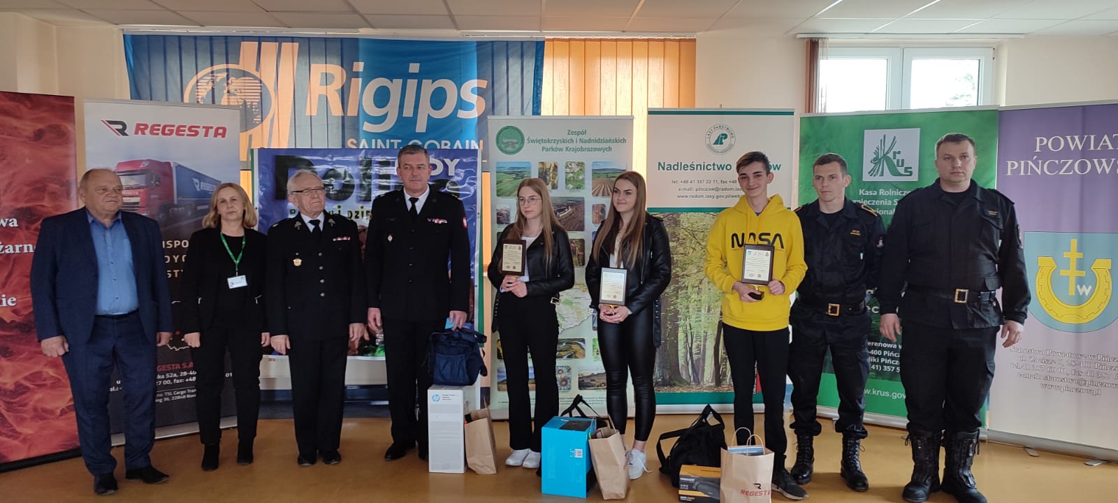 Dla uczestników turnieju przygotowano statuetki oraz nagrody rzeczowe i tu szczególne podziękowania w imieniu uczestników dla fundatorów nagród. Głównymi organizatorami konkursu na szczeblu powiatowym był Komendant Powiatowy Państwowej Straży Pożarnej w Pińczowie bryg. Grzegorz Karwat oraz Starosta Pińczowski Zbigniew Kierkowski. Jednak nie udałoby się zapewnić takich nagród bez współorganizatorów turnieju, w tym firm takich jak: Regesta S.A., Dolina Nidy, fabryka Rigips