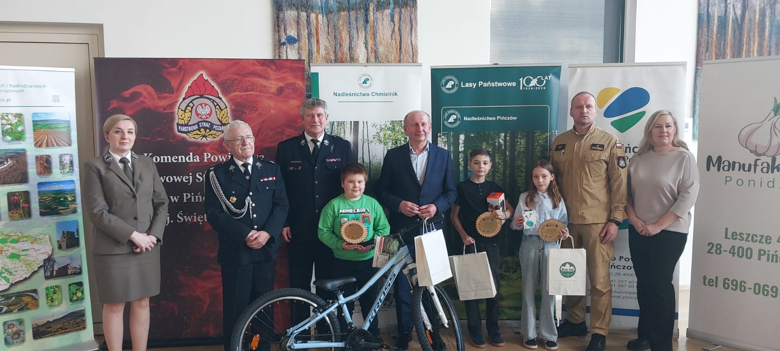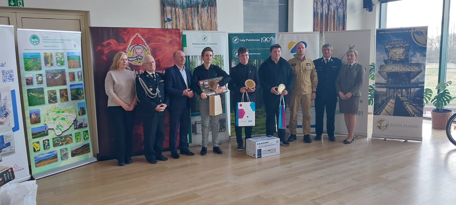 Dla uczestników turnieju przygotowano statuetki oraz nagrody rzeczowe i tu szczególne podziękowania dla fundatorów nagród: Oddział Wojewódzki Związku Ochotniczych Straży Pożarnych, Starostwo Powiatowe w Pińczowie, Złote Ziarno, Rigips Saint- Gobain, Nadleśnictwo Chmielnik, Nadleśnictwo Pińczów, Wioletta Musiał Spec- Bud, Biuro Inżynieryjne Paweł Obważanek, Gospodarstwo Rolne Marcin Saltarski, Bałtykgaz, Zespół Świętokrzyskich i Nadnidziańskich Parków Krajobrazowych. Łączną wartość nagród oszacowano na ok. 11,5 tyś. zł. Głównymi organizatorami konkursu na szczeblu powiatowym był Komendant Powiatowy Państwowej Straży Pożarnej w Pińczowie mł. bryg. Mariusz Fodymski, Starosta Pińczowski Zdzisław Leks oraz Zarząd Oddziału Powiatowego Związku OSP RP w Pińczowie reprezentowany przez Prezesa dh Zbigniewa Kierkowskiego oraz sekretarza dh Marka Długosza. Ponadto w organizację tegorocznego konkursu aktywnie włączyło się Nadleśnictwo Chmielnik. Uczestnicy konkursu gościli w Ośrodku Edukacji Przyrodniczej w Umianowicach dzięki przychylności Dyrektora Zespołu Świętokrzyskich i Nadnidziańskich Parków Krajobrazowych dr inż. Tomasza Hałatkiewicza oraz Pani Alicji Adamczyk pełniącą obowiązki kierownika ośrodka.