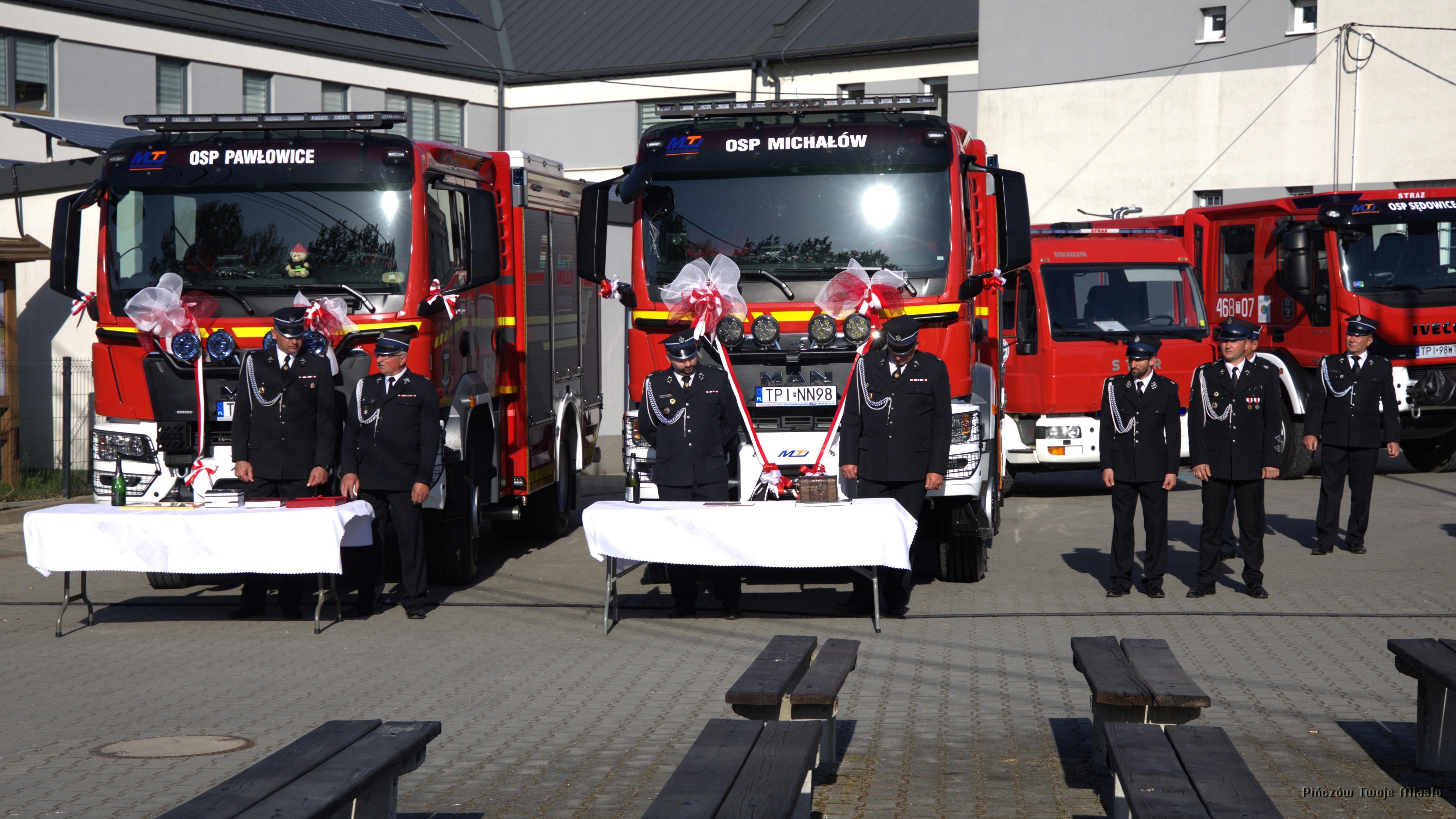 Podczas uroczystości został poświęcony oraz wręczony nowy sztandar dla jednostki Ochotniczej Straży Pożarnej w Pawłowicach, a także zostały poświęcone i przekazane dwa fabrycznie nowe średnie samochody ratowniczo – gaśnicze marki Man dla jednostek OSP Pawłowice i OSP Michałów. Średnie samochody ratowniczo – gaśnicze użytkowane dotychczas przez jednostki z Michałowa i Pawłowic zostały przekazane kolejnym OSP. Średni samochód ratowniczo – gaśniczy marki Star – Man z jednostki OSP Pawłowice trafił na wyposażenie jednostki OSP Wrocieryż, natomiast średni samochód ratowniczo – gaśniczy marki Iveco używany przez strażaków OSP Michałów trafił do podziału bojowego jednostki OSP Sędowice.
