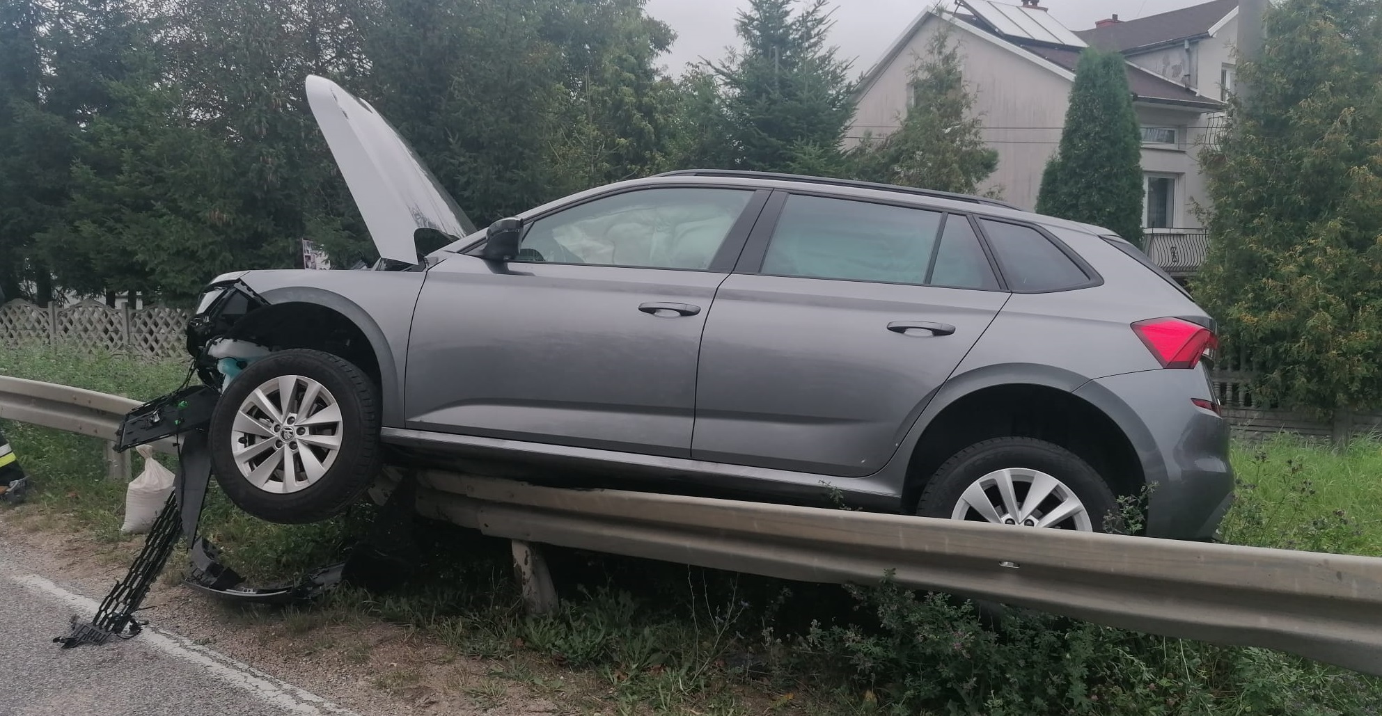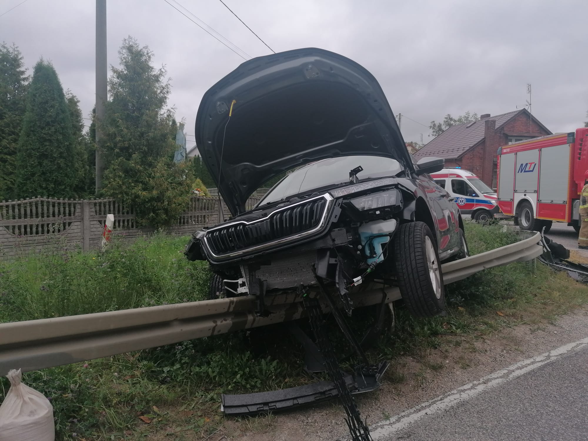 Po przybyciu na miejsce zdarzenia Kierujący Działaniem Ratowniczym ustalił, iż samochód osobowy marki skoda uderzył w barierę energochłonną. Pojazdem podróżowała jedna osoba która samodzielnie zdołała go opuścić przed przyjazdem JOP. Wskutek powyższego zdarzenia poszkodowana została kierująca pojazdem kobieta, której strażacy PSP wraz z załogą ZRM udzielili pomocy medycznej. Następnie na mocy decyzji Zespołu Ratownictwa Medycznego została ona zabrana do szpitala.