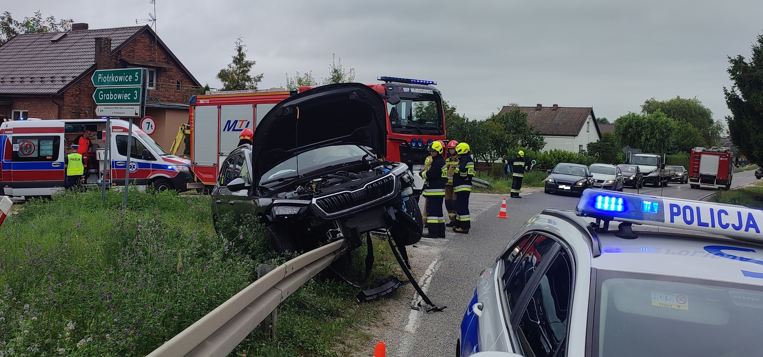 Działania jednostek ochrony przeciwpożarowej obecnych na miejscu zdarzenia polegały na zabezpieczeniu miejsca zdarzenia, odłączeniu źródeł zasilania elektrycznego w pojeździe uczestniczącym w zdarzeniu, jak również ograniczeniu wycieku płynów eksploatacyjnych.