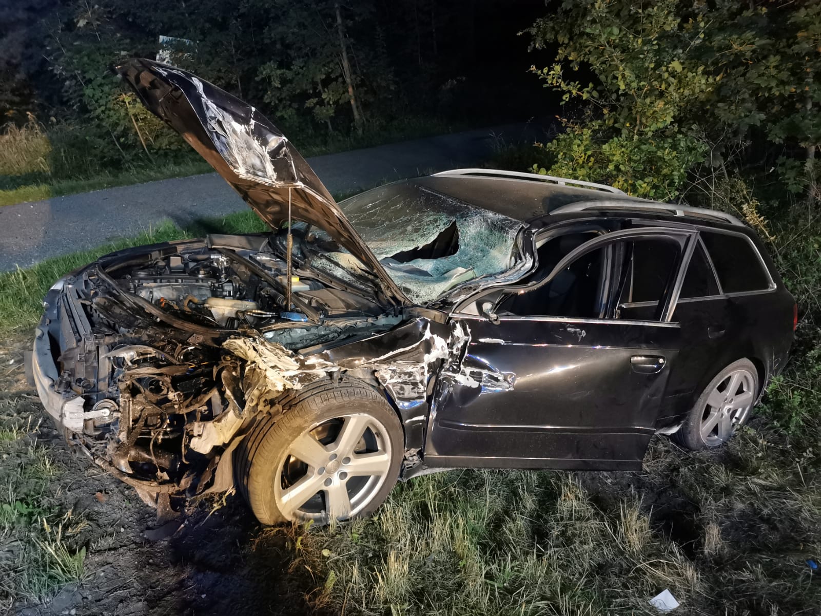 doszło do zderzenia czterech pojazdów: trzech osobowych oraz jednego dostawczego. Pojazdami podróżowało łącznie dziesięć osób. Strażacy niezwłocznie przystąpili do wykonania dostępu do jednej z osób uwięzionej w pojeździe, po czym udzielono jej kwalifikowanej pierwszej pomocy. Następnie poszkodowanego oraz pozostałych uczestników zdarzenia przekazano przybyłym na miejsce Zespołom Ratownictwa Medycznego. Ratownik medyczny koordynujący medyczne działania ratownicze podjął decyzję o zabraniu do szpitala jednego z poszkodowanych.