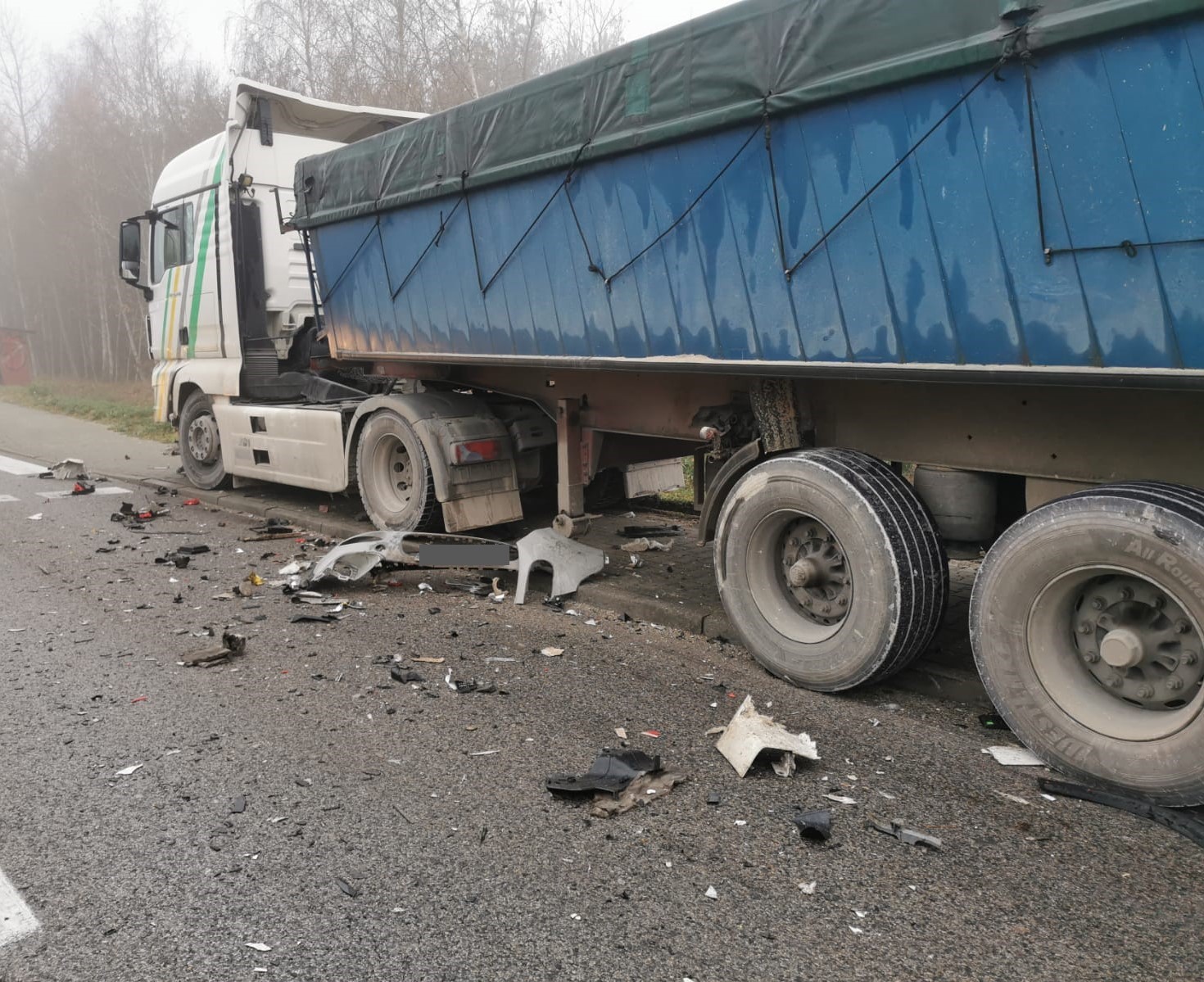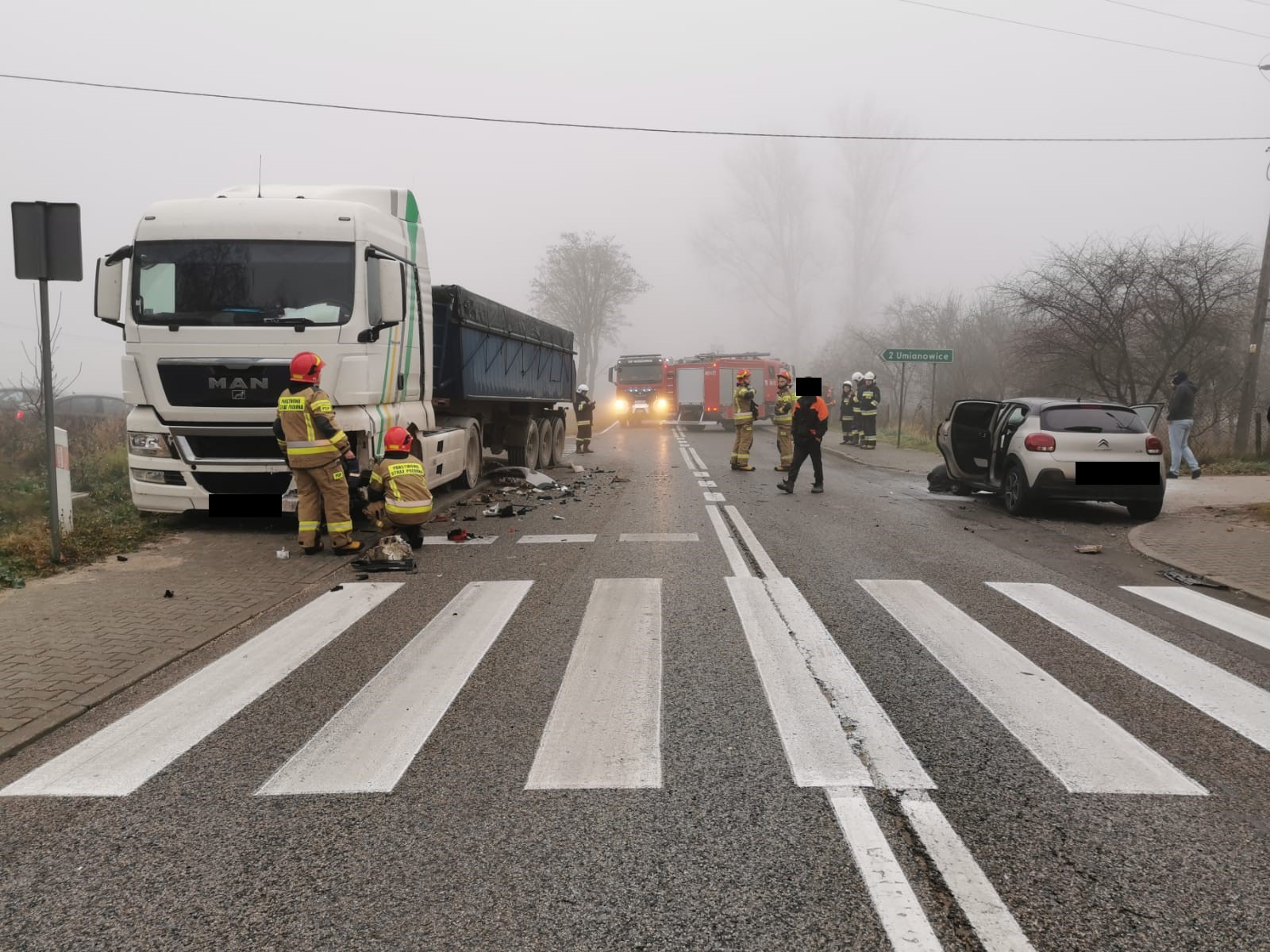 Po przybyciu na miejsce zdarzenia Kierujący Działaniem Ratowniczym ustalił, iż doszło do zdarzenia drogowego z udziałem trzech pojazdów (dwóch osobowych i jednego ciężarowego). W chwili przybycia zastępów PSP na miejsce zdarzenia wszystkie osoby podróżujące pojazdami znajdowały się poza nimi. Wskutek powyższego zdarzenia poszkodowany został kierowca jednego z pojazdów osobowych, któremu strażacy PSP wraz z załogą ZRM udzielili pomocy medycznej. Następnie na mocy decyzji Zespołu Ratownictwa Medycznego został on zabrany do szpitala.