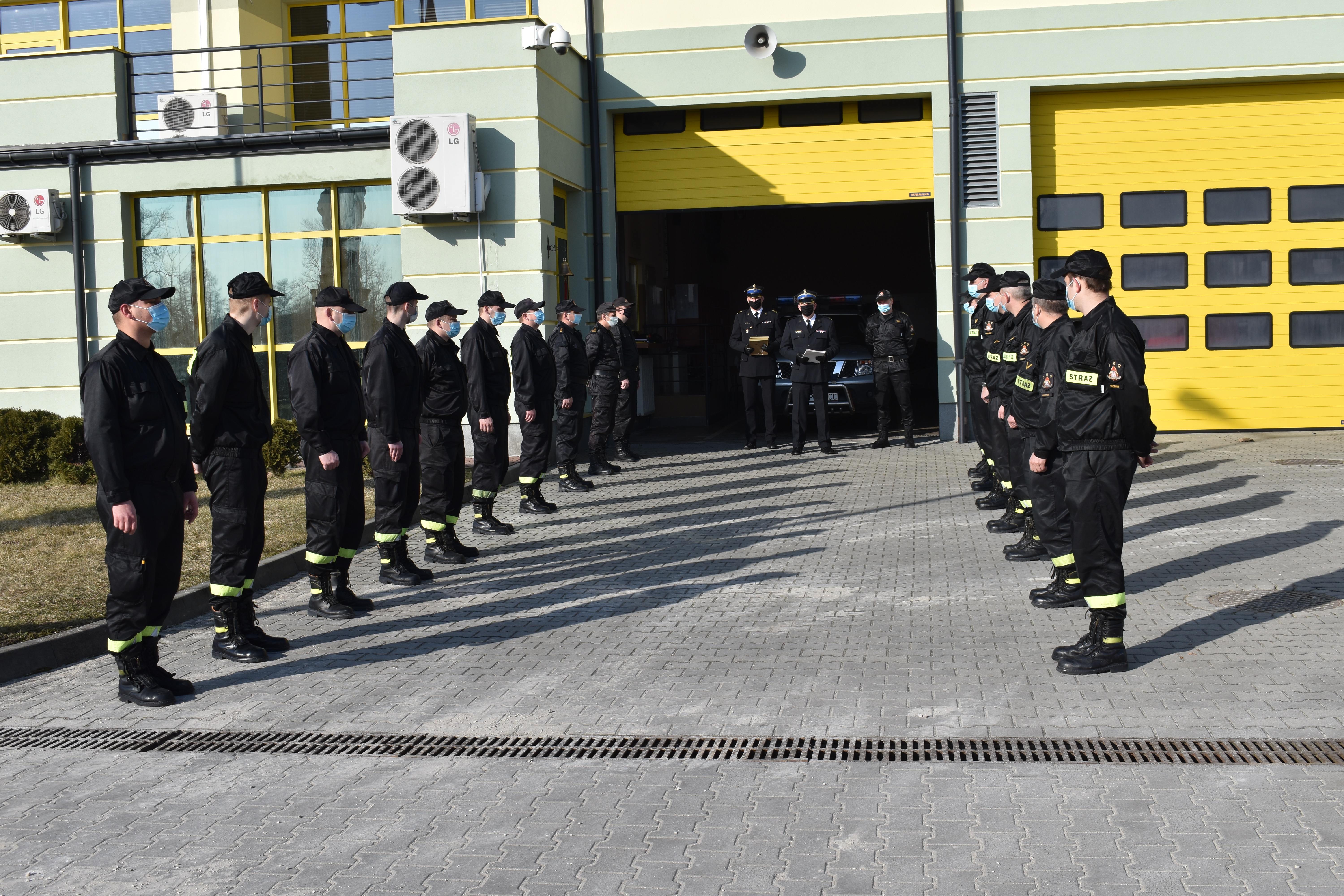 Szef pińczowskich strażaków skierował słowa uznania do wyróżnionych jak również podziękował im za profesjonalizm podkreślając przy tym wypełnienie roty strażackiego ślubowania.