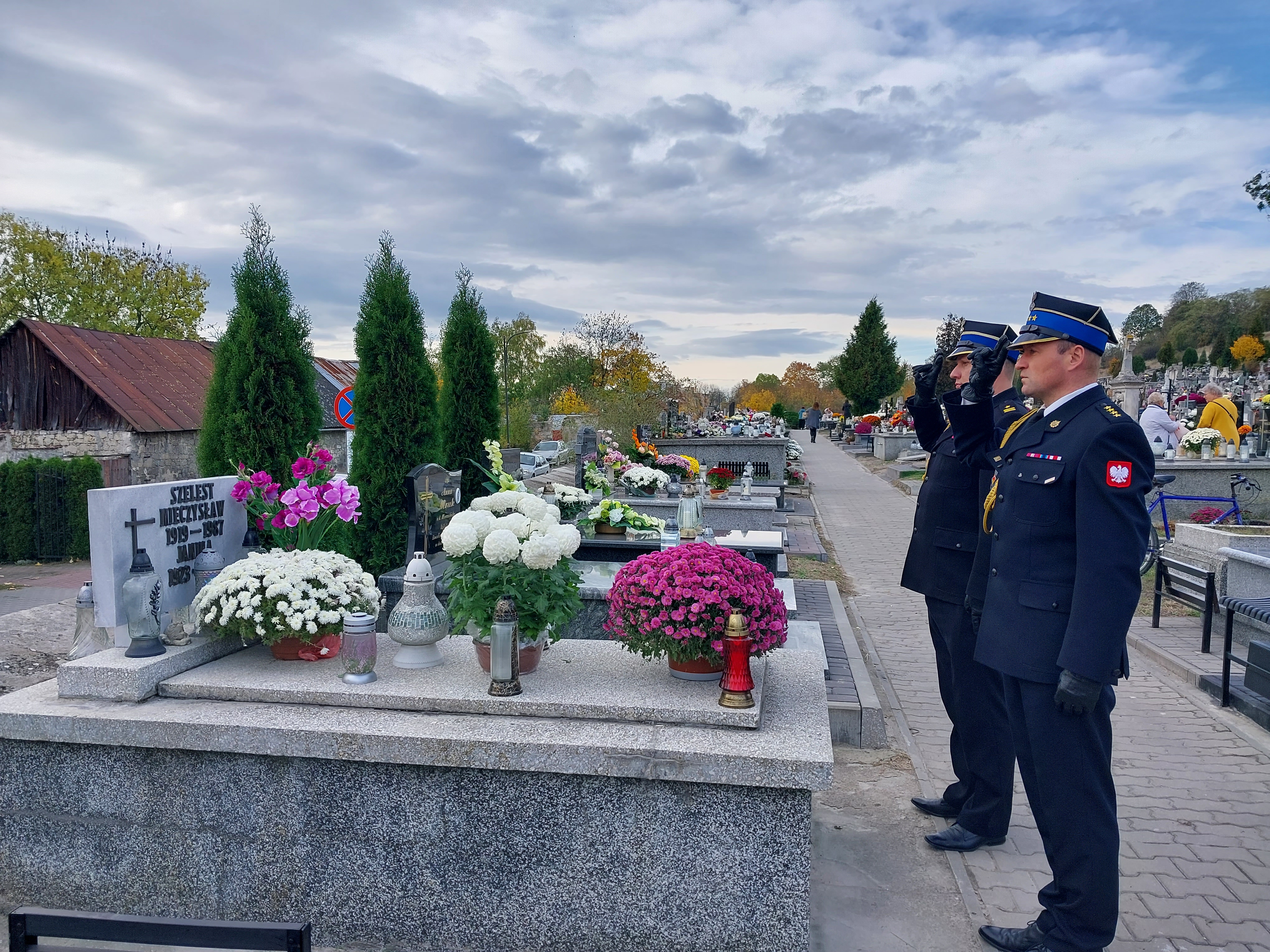 1 listopada przypada Dzień Wszystkich Świętych, w który odwiedzamy groby naszych bliskich. Pińczowscy strażacy również w tym czasie pamiętają o swoich kolegach, osobach zasłużonych dla ochrony przeciwpożarowej. 31 października 2023 r. delegacja funkcjonariuszy z Komendy Powiatowej Państwowej Straży Pożarnej w Pińczowie uczciła pamięć strażaków, którzy odeszli na ,,wieczną służbę”. Zapalili znicze na grobach, oddając symbolicznie hołd wszystkim zmarłym funkcjonariuszom pożarnictwa oraz strażakom ochotnikom, w tym m.in. byłemu Komendantowi Rejonowemu Straży Pożarnych w Pińczowie. W tym szczególnym okresie uczczono tym samym pamięć strażaków-bohaterów, którzy oddali swoje życie ratując życie innych.