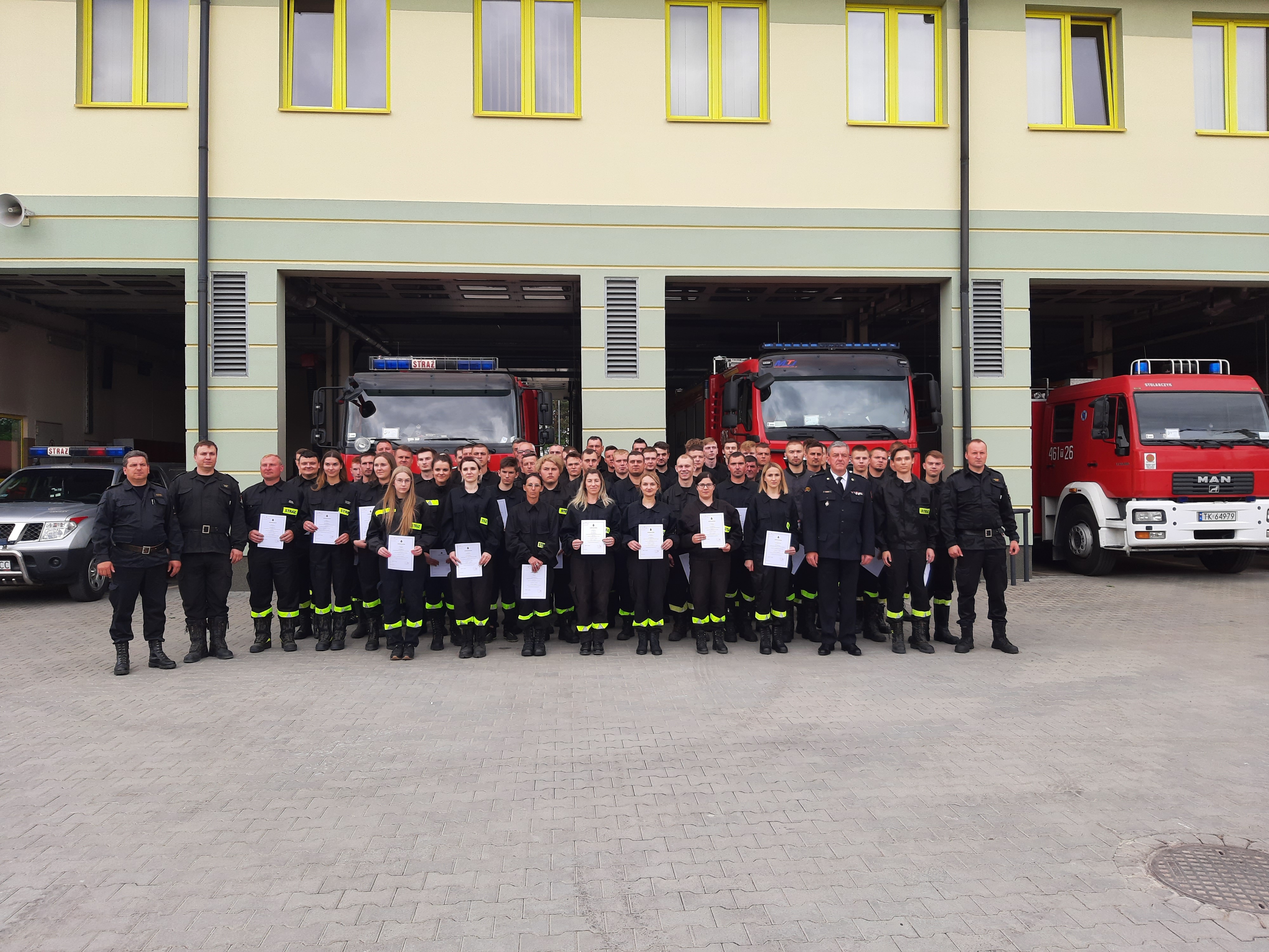 Szkolenie strażaków-ochotników odbywało się w systemie weekendowym, na terenie Komendy Powiatowej PSP w Pińczowie oraz Komendy Wojewódzkiej PSP w Kielcach (zaliczenie testu w komorze dymowej, szkolenie z zakresu współpracy z Lotniczym Pogotowiem Ratunkowym). Kurs został zorganizowany zgodnie z zasadami przygotowania strażaków ratowników Ochotniczych Straży Pożarnych do udziału w działaniach ratowniczych oraz według programu szkolenia podstawowego strażaka ratownika Ochotniczych Straży Pożarnych. Po odbyciu 133 godzin szkoleniowych teoretycznych i praktycznych, do egzaminu przystąpiło 58 osób, 10 druhem oraz 48 druhów. Wszyscy słuchacze pozytywnie zdali egzamin teoretyczny i praktyczny, a także egzamin z BHP. Zaświadczenia o ukończeniu szkolenia wręczył ratownikom Komendant Powiatowy PSP w Pińczowie bryg. Grzegorz Karwat. Gratulujemy ratownikom nabycia nowych kwalifikacji i życzymy tyle powrotów co wyjazdów do zdarzeń.