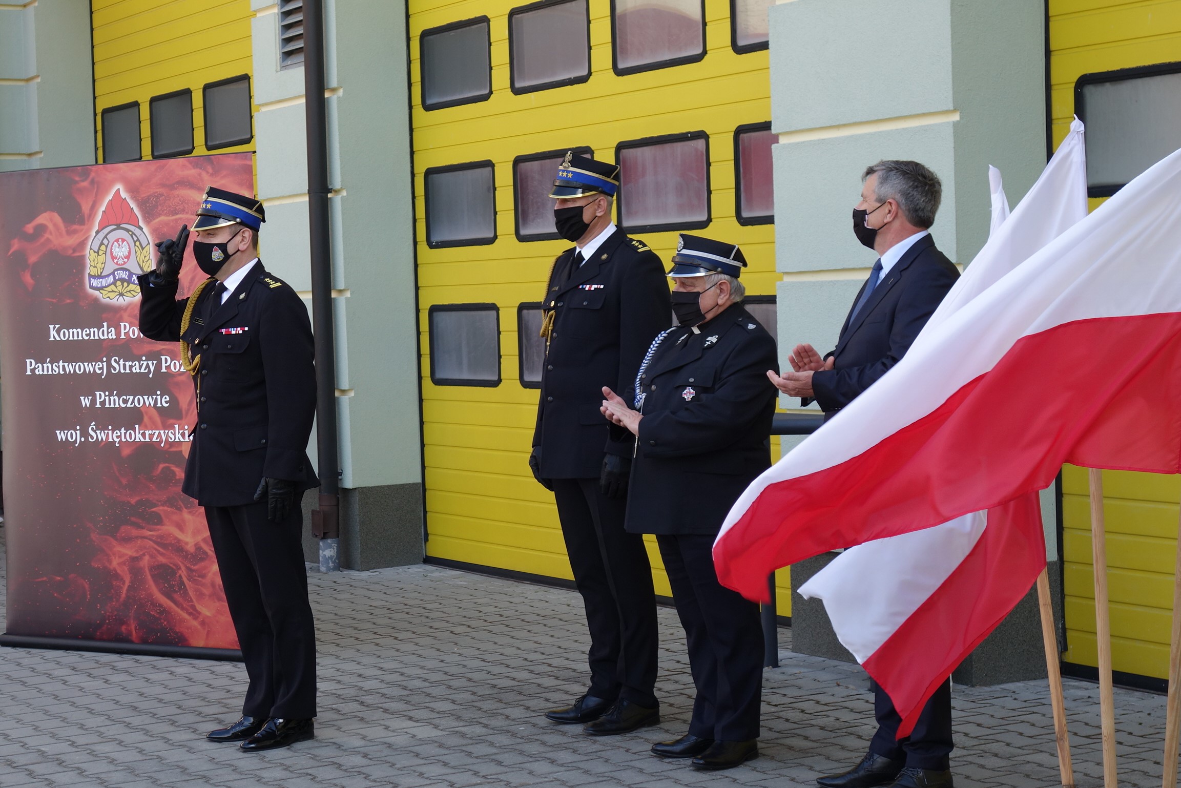 w zapewnienie bezpieczeństwa mieszkańcom ziemi pińczowskiej jak również podkreślił zaangażowanie strażaków w walkę zagrożeniem związanym z koronawirusem.