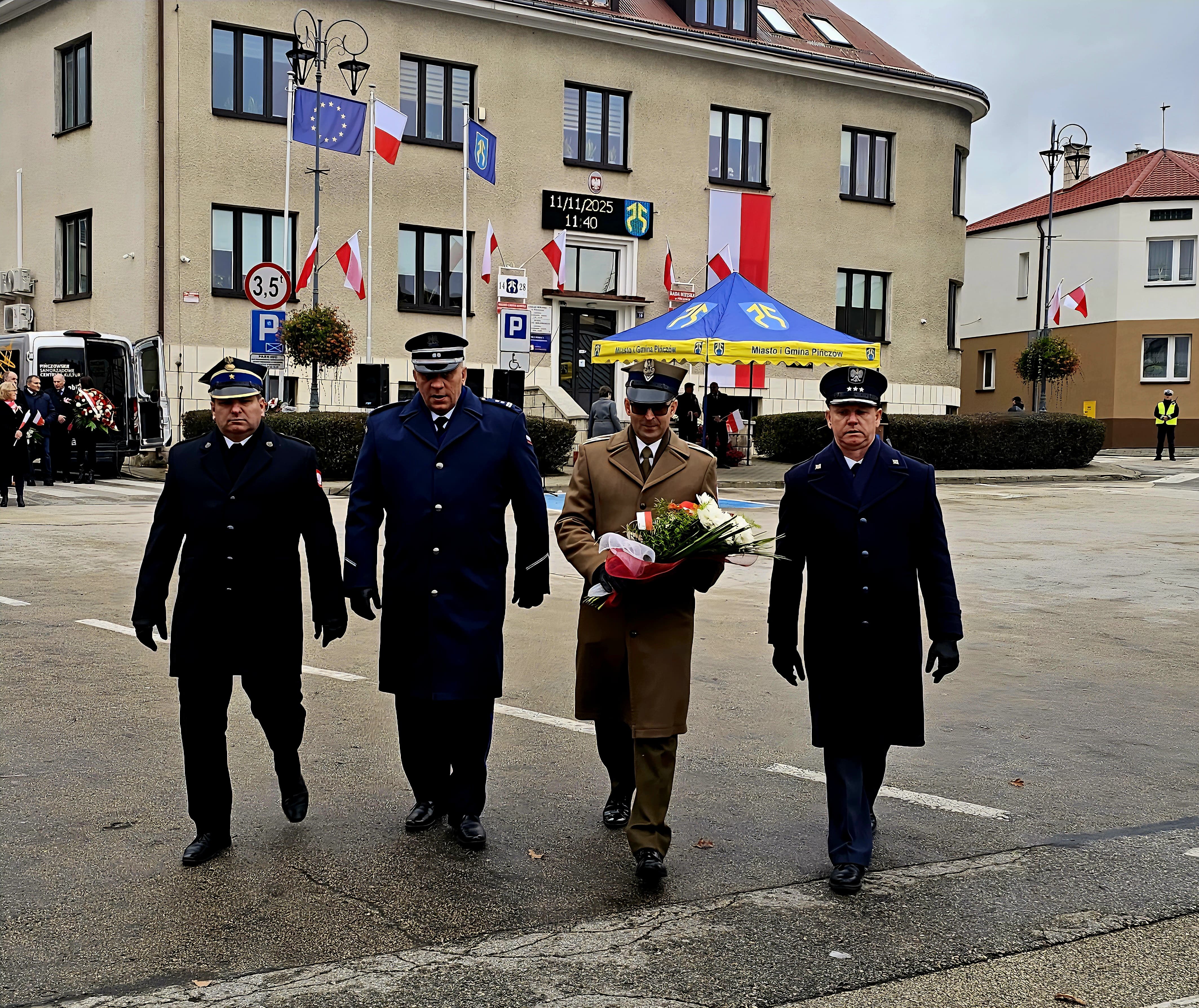 Pińczowscy strażacy uczestniczący w uroczystościach podkreślili tym samym wagę Narodowego Święta Niepodległości oraz znaczenie postaw patriotycznych i szacunku dla barw narodowych.