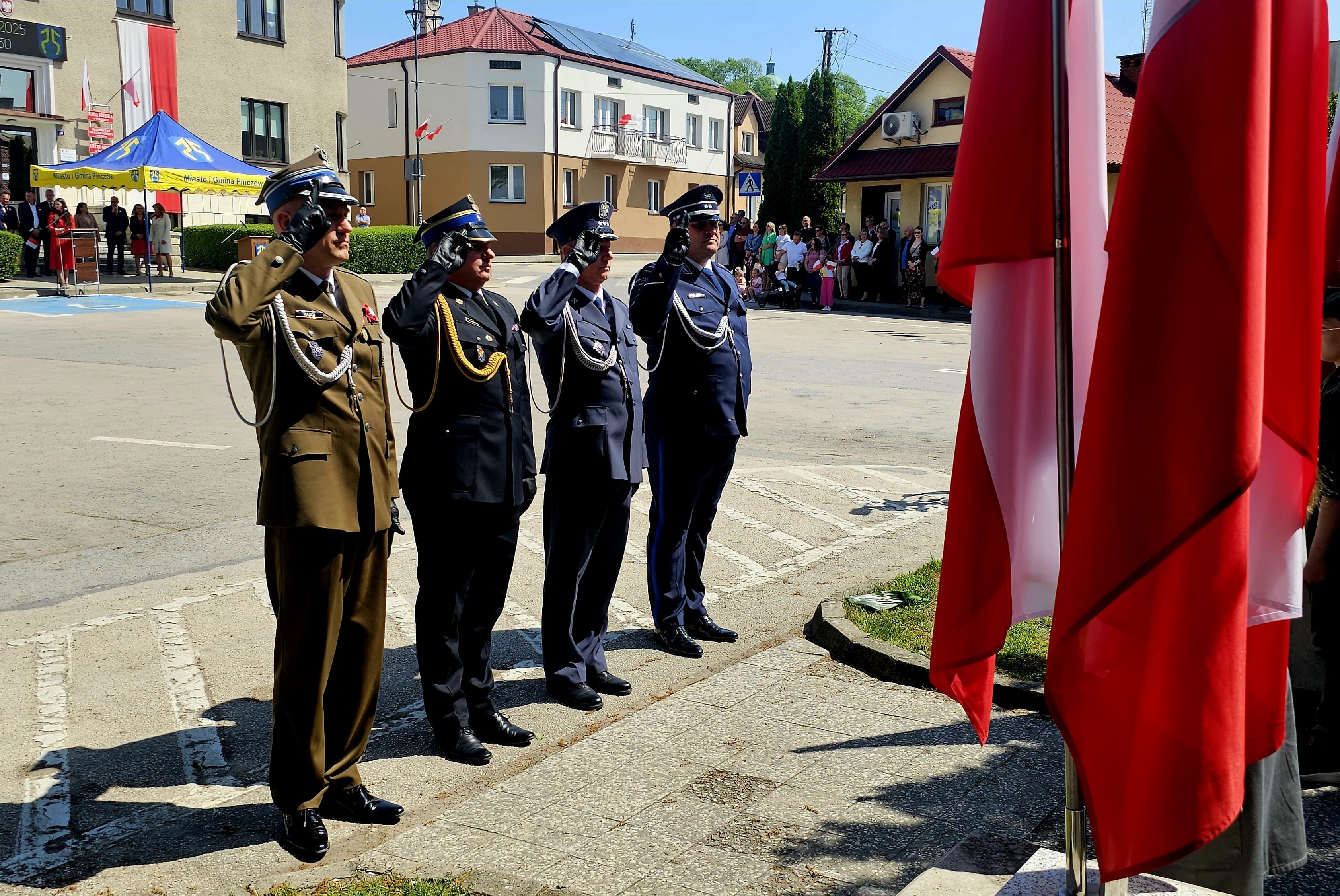 Oficjalne uroczystości uczczenia 234 rocznicy uchwalenia Konstytucji 3 Maja rozpoczęły się w Pińczowie od Mszy Świętej w intencji Ojczyzny w kościele pw. Św. Jana Apostoła i Ewangelisty. Dalsza część uroczystości odbyła się o godz. 11.00 na placu przed pomnikiem Konstytucji 3 Maja. Podczas tego wydarzenia delegacja służb mundurowych z powiatu pińczowskiego złożyła kwiaty pod pomnikiem. Komendę Powiatową PSP w Pińczowie reprezentował Komendant Powiatowy PSP mł. bryg. Mariusz Fodymski wraz z pocztem flagowym oraz sztandarowym KP PSP w Pińczowie.