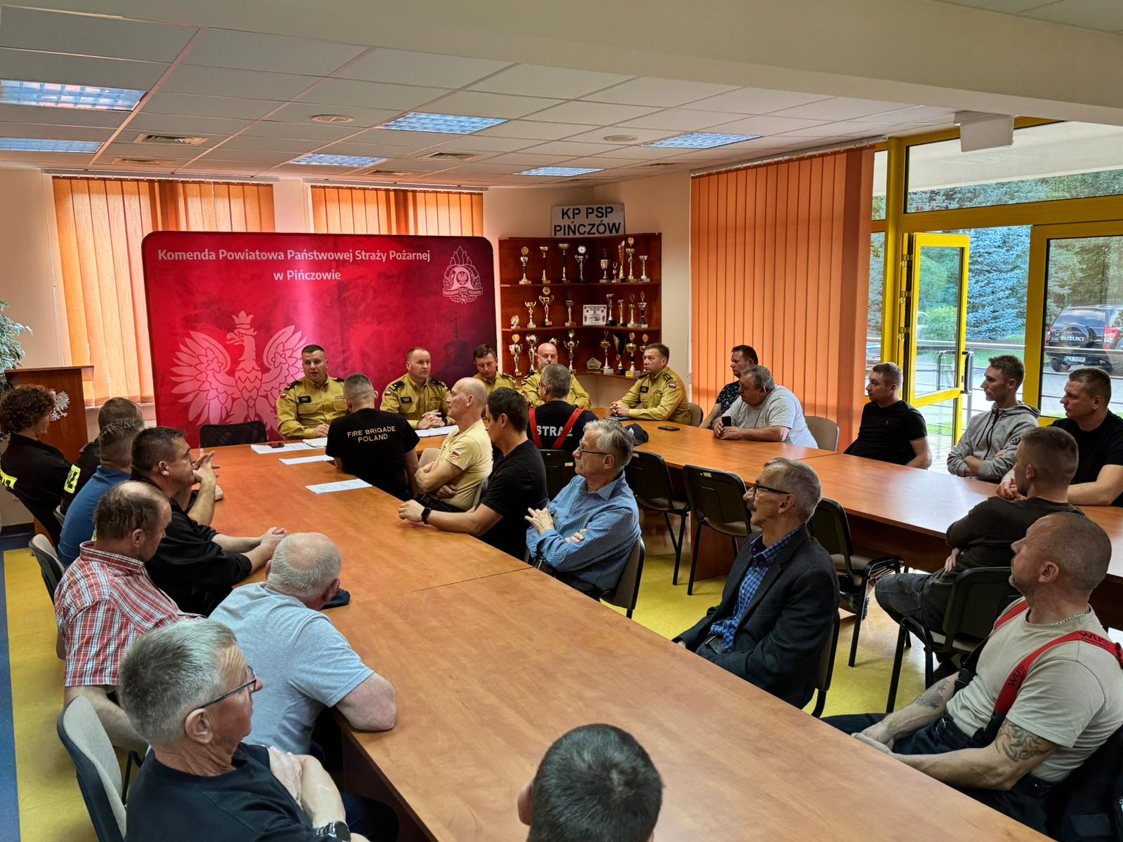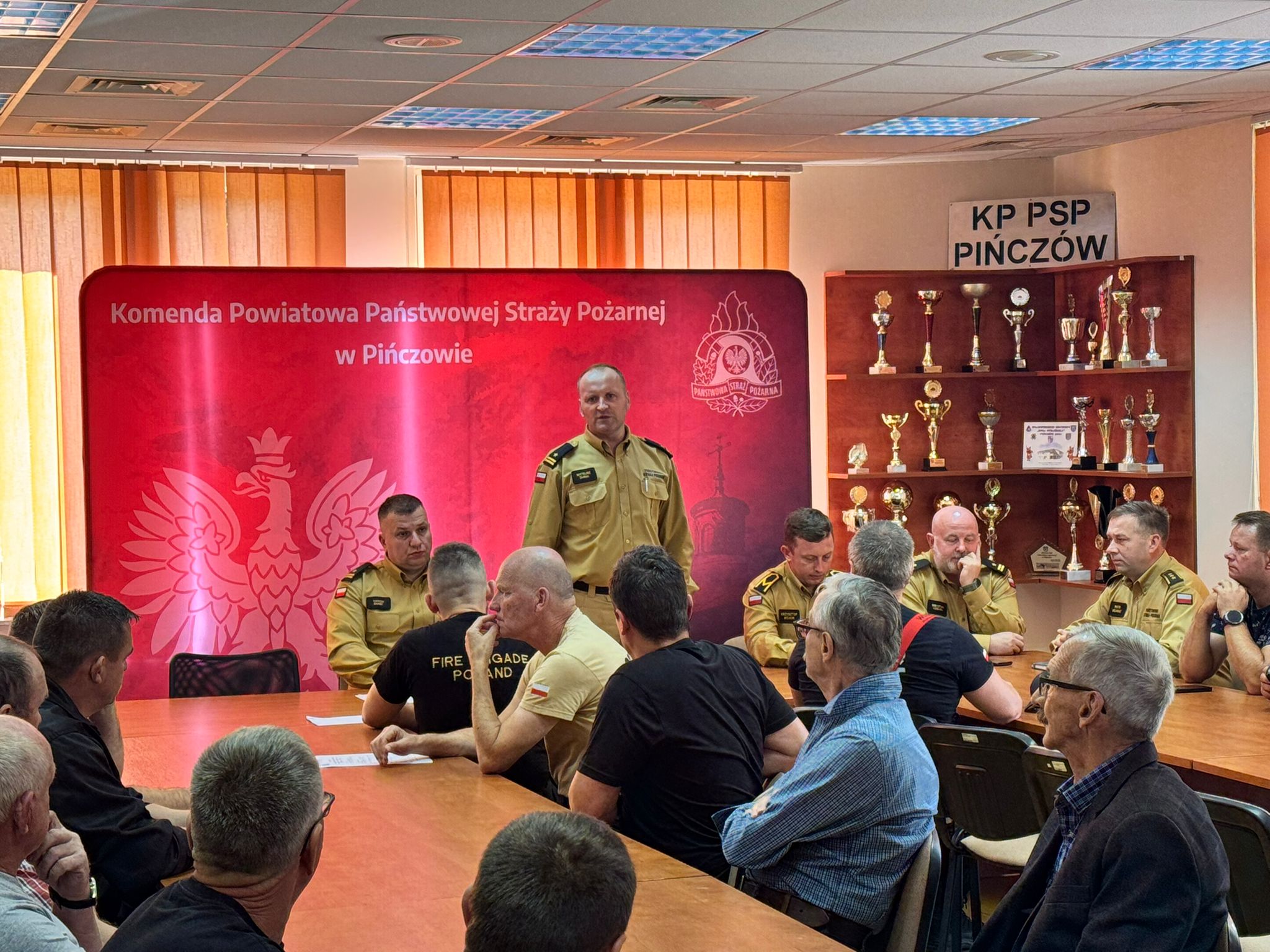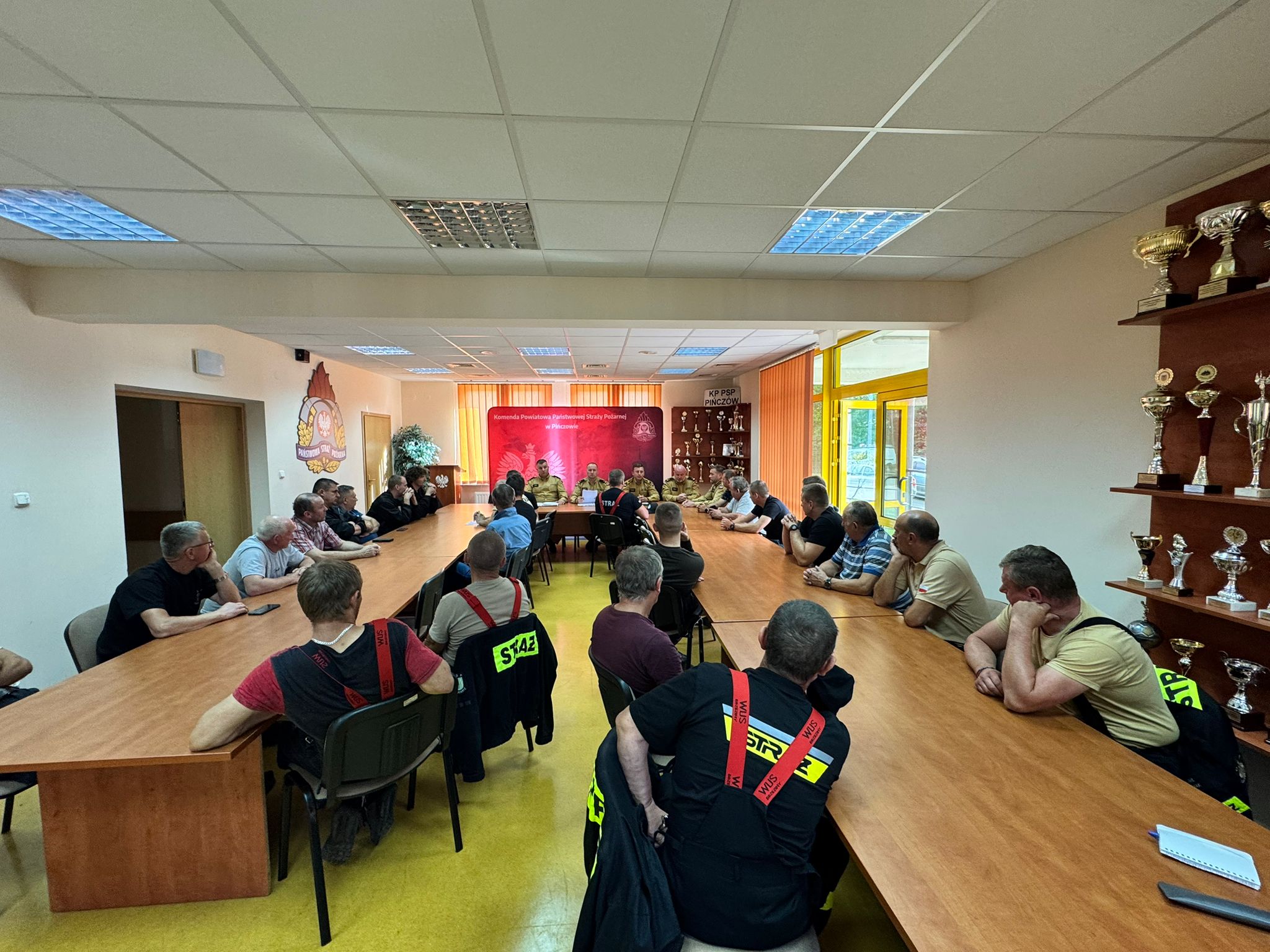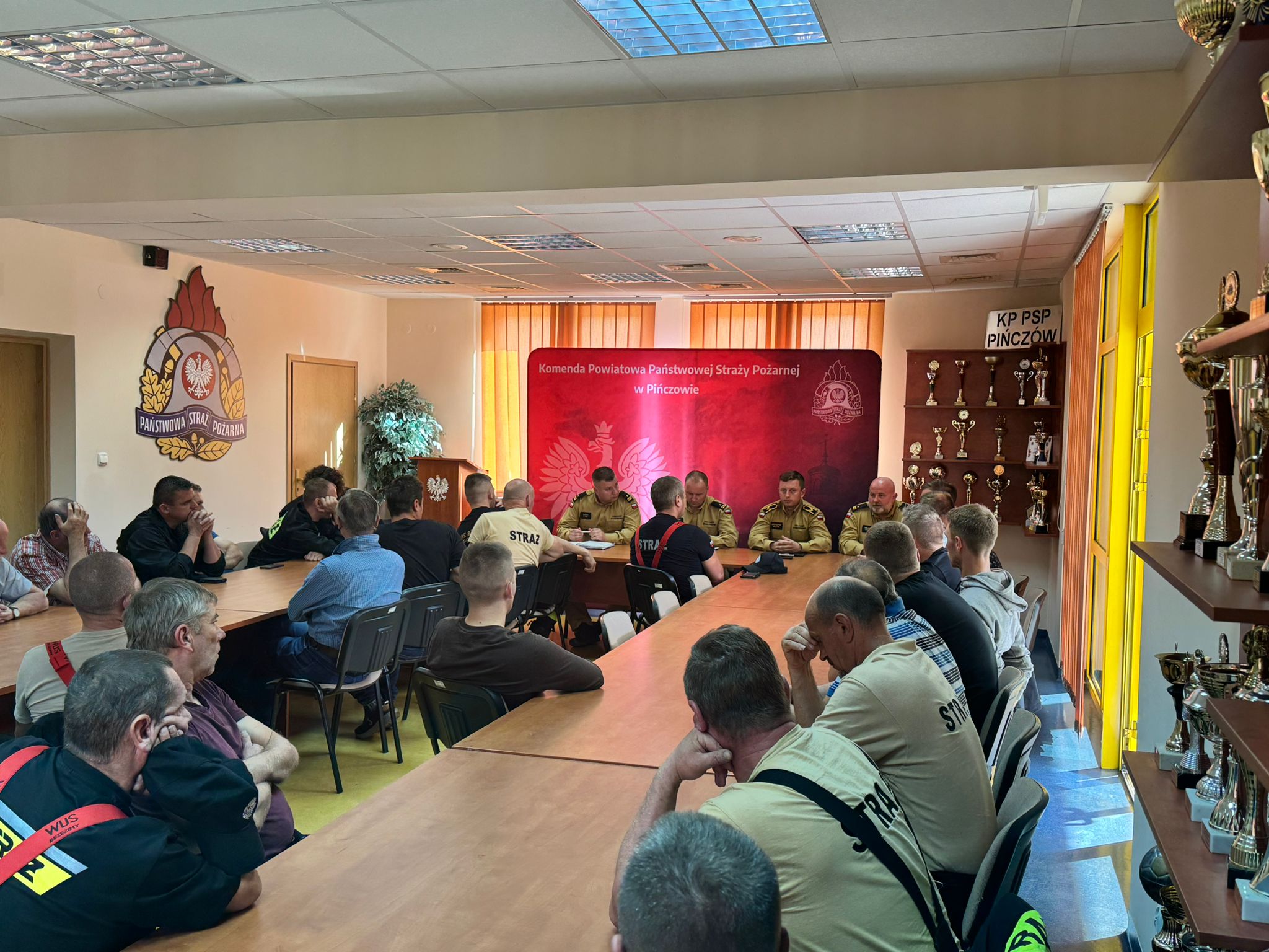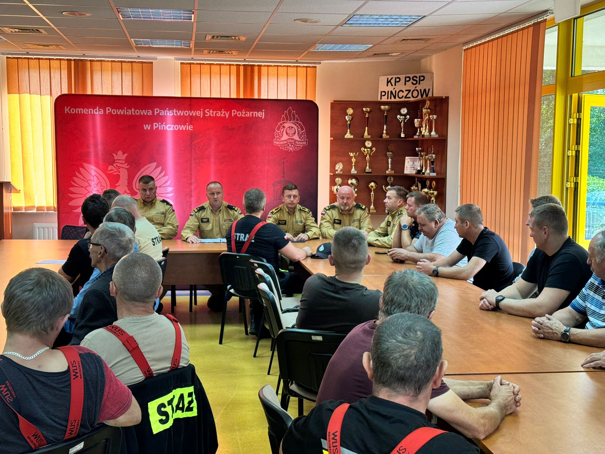ODPRAWA Z NACZELNIKAMI JEDNOSTEK OSP W KOMENDZIE POWIATOWEJ PSP W PIŃCZOWIE