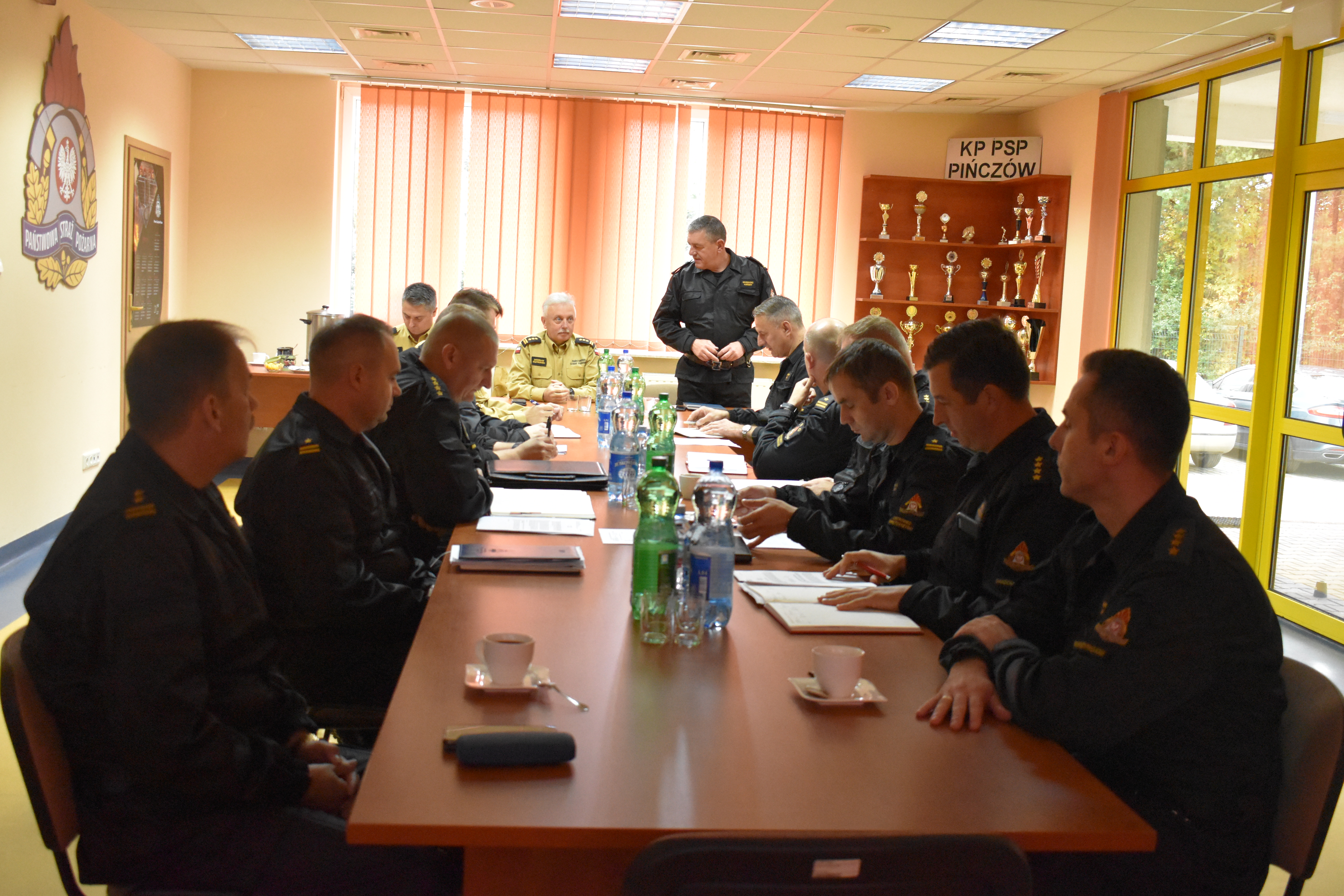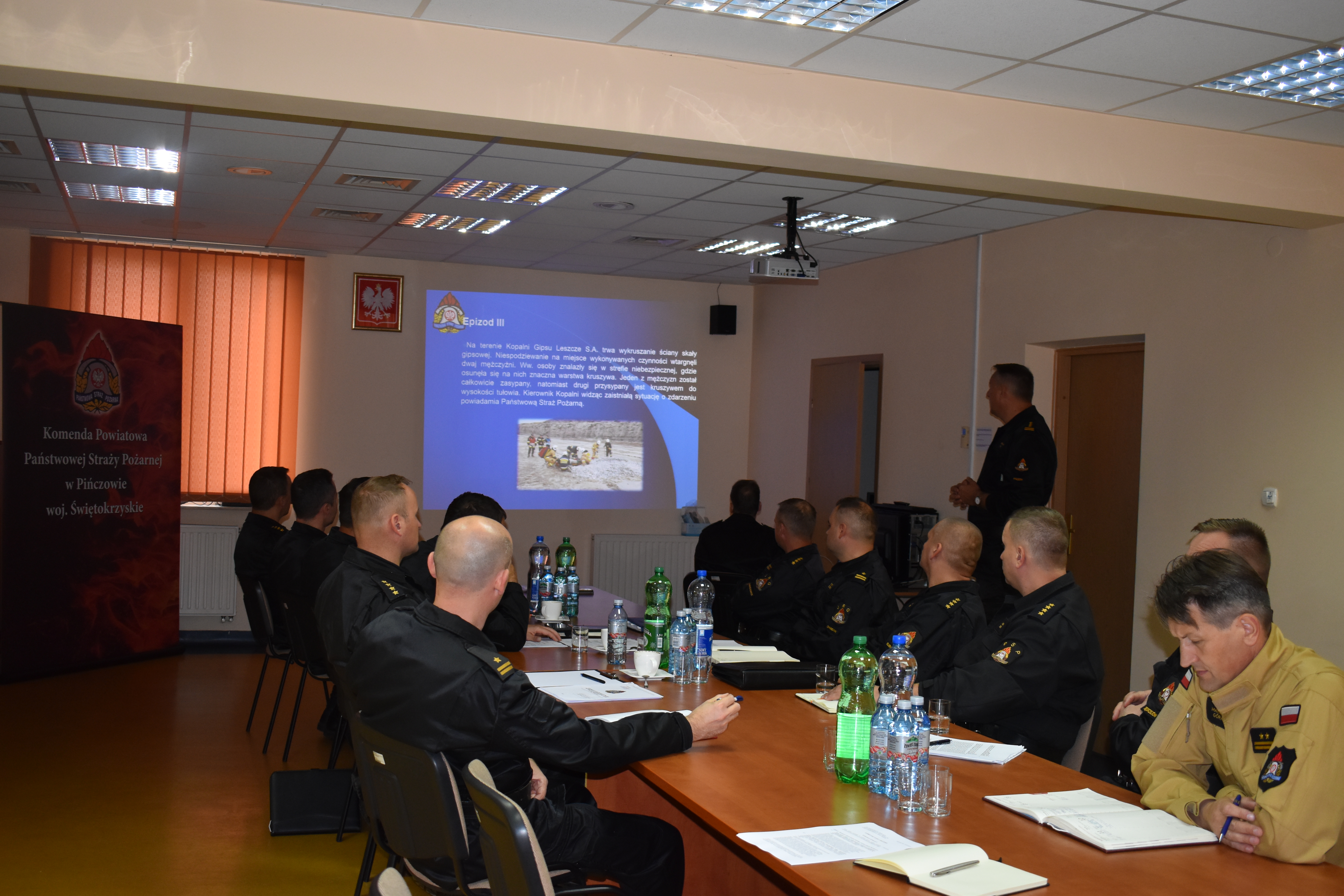 Komendy Wojewódzkiej PSP w Kielcach. Na zakończenie spotkania Z-ca Komendanta Wojewódzkiego PSP st. bryg. Jarosław Piotrowski podziękował wszystkim uczestnikom ćwiczeń za zaangażowanie w realizację zadań podczas ćwiczeń.