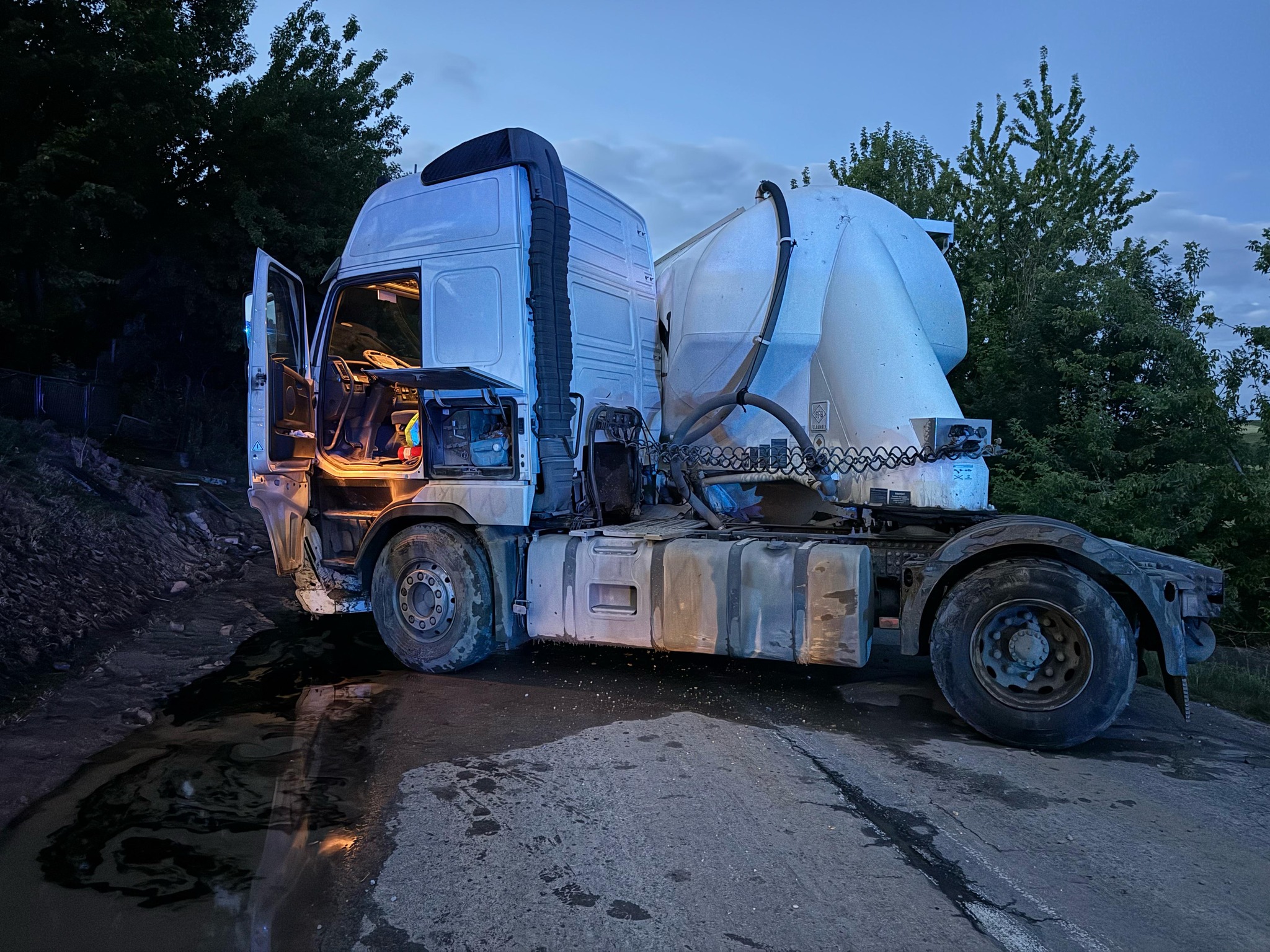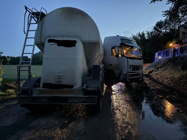 Wskutek zamulenia drogi wojewódzkiej w m. Niewiatrowice doszło także do zdarzenia drogowego z udziałem cięgnika siodłowego z naczepą, który uderzył w skarpę. W następstwie tegoż zdarzenia doszło do wycieku płynów eksploatacyjnych, które strażacy usunęli przy użyciu sorbentu i zabezpieczyli w specjalnych pojemnikach.
