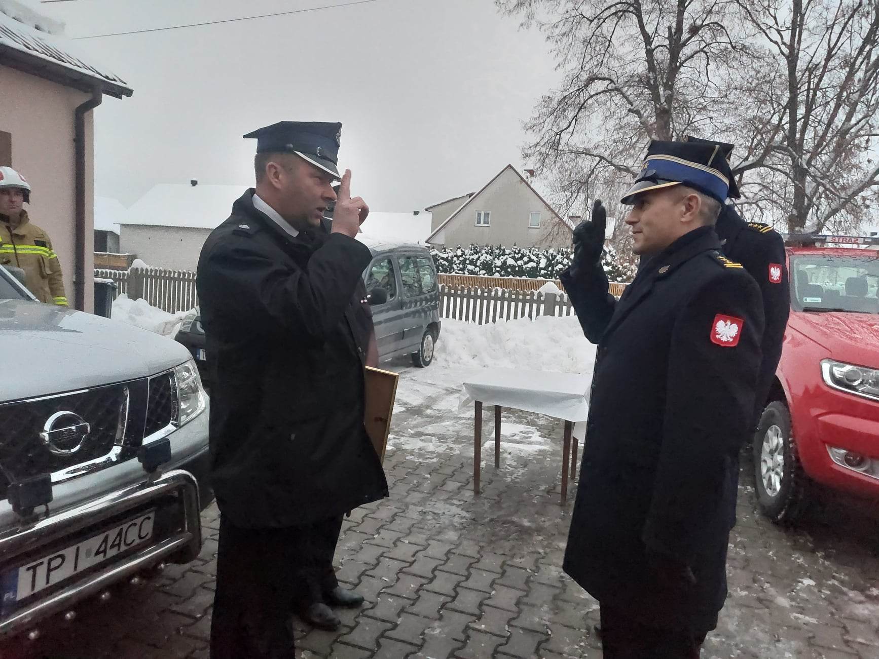 w Pińczowie st. bryg. Jarosław Huk podziękowali druhom OSP z terenu gminy Michałów za codzienną służbę na rzecz bezpieczeństwa mieszkańców oraz złożyli serdeczne życzenia