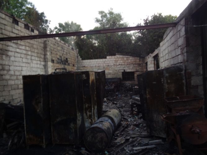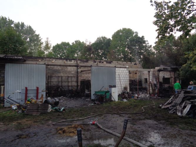 Do zdarzenia zadysponowano trzy zastępy z pińczowskiej Jednostki Ratowniczo-Gaśniczej oraz cztery pobliskie jednostki ochotniczych straży pożarnych. Po przybyciu na miejsce zdarzenia Kierujący Działaniem Ratowniczym ustalił, iż pożarem objęte jest wnętrze garażu murowanego wraz z więźbą dachową. Strażacy po zabezpieczeniu miejsca zdarzenia niezwłocznie podali trzy prądy wody W-52 w natarciu na paląca się cześć garażu, oraz jeden prąd wody W-52 w obronie zagrożonej stodoły znajdującej się w pobliżu. Po zlokalizowaniu pożaru przystąpiono do ewakuacji mienia, które znajdowało się wewnątrz garażu (maszyny rolnicze, wyposażenie garażu oraz trzy 200 litrowe beczki z olejem napędowym). Beczki te zostały schłodzone prądem wody, a następnie złożone w bezpiecznym miejscu. Nadpalone elementy wyposażenia garażu zostały wyniesione na zewnątrz i dokładnie przelane wodą. Po wykonaniu ww. czynności przystąpiono do rozbiórki nadpalonej więźby dachowej w części garażu w której był pożar. Po zakończeniu działań miejsce działań sprawdzono przy użyciu kamery termowizyjnej.