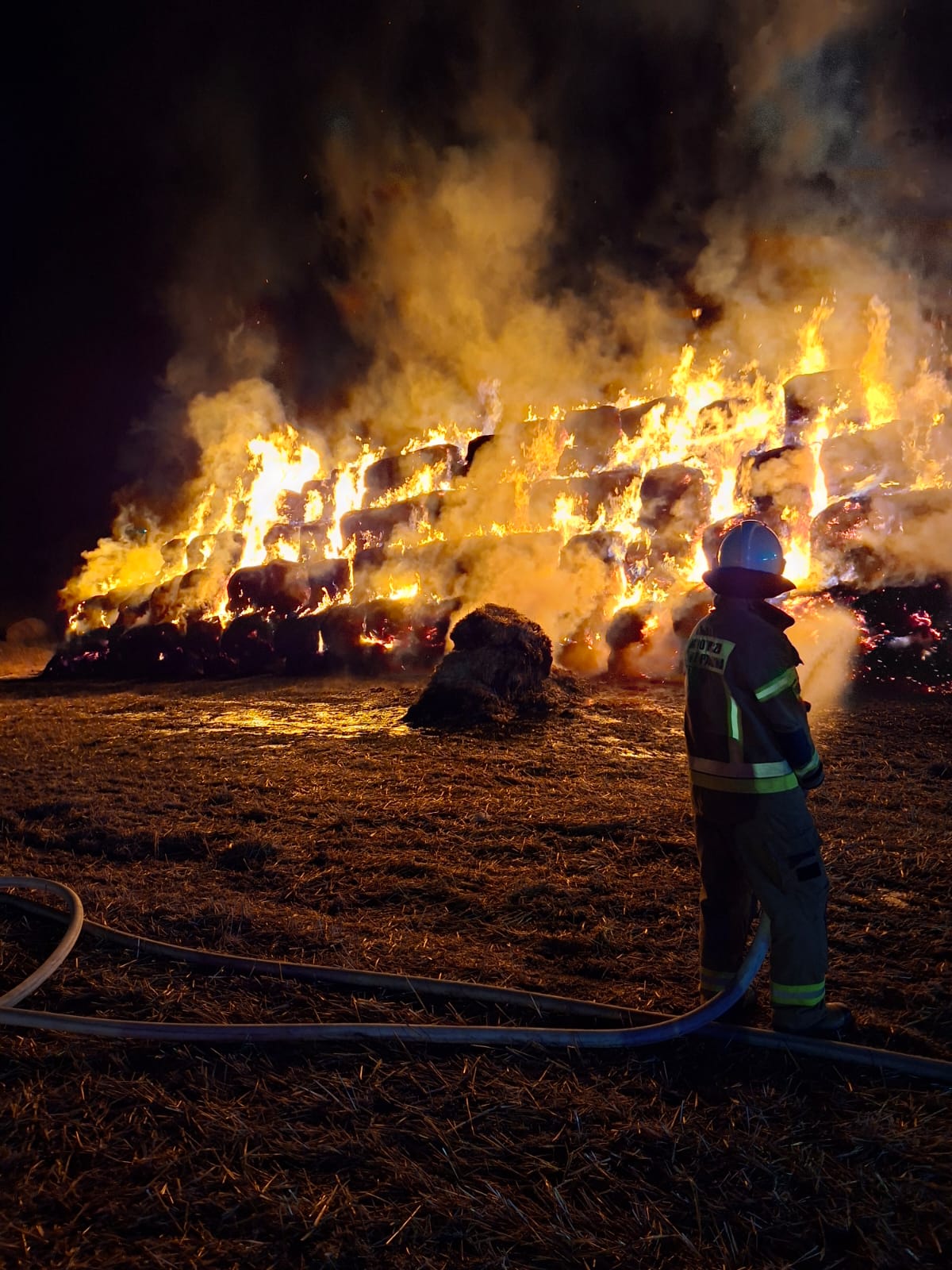 26 sierpnia 2025 r. o godz. 20.42 do stanowiska kierowania komendanta powiatowego PSP w Pińczowie wpłynęło zgłoszenie o pożarze stogu ze słomą w miejscowości Złota. Do zdarzenia zadysponowano dwa zastępy z pińczowskiej Jednostki Ratowniczo-Gaśniczej PSP oraz sześć zastępów z Jednostek Ochotniczych Straży Pożarnych. Po przybyciu na miejsce zdarzenia Kierujący Działaniem Ratowniczym ustalił, iż pożarem objęty jest cały stóg, w którym było około 250 sztuk okrągłych bali słomy. Strażacy po zabezpieczeniu i oświetleniu miejsca zdarzenia podali pięć prądów wody w natarciu na pożar. Po opanowaniu pożaru strażacy przystąpili do dogaszania słomy. W tym celu wykorzystano koparko – ładowarkę będącą własnością Gminy Złota. Ze względu na długotrwałe działania organizowano podmiany pracujących strażaków. Podczas zdarzenia nikt nie ucierpiał. W działaniach trwających ponad 16 godziny udział wzięło 60 strażaków ratowników.