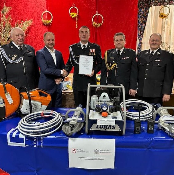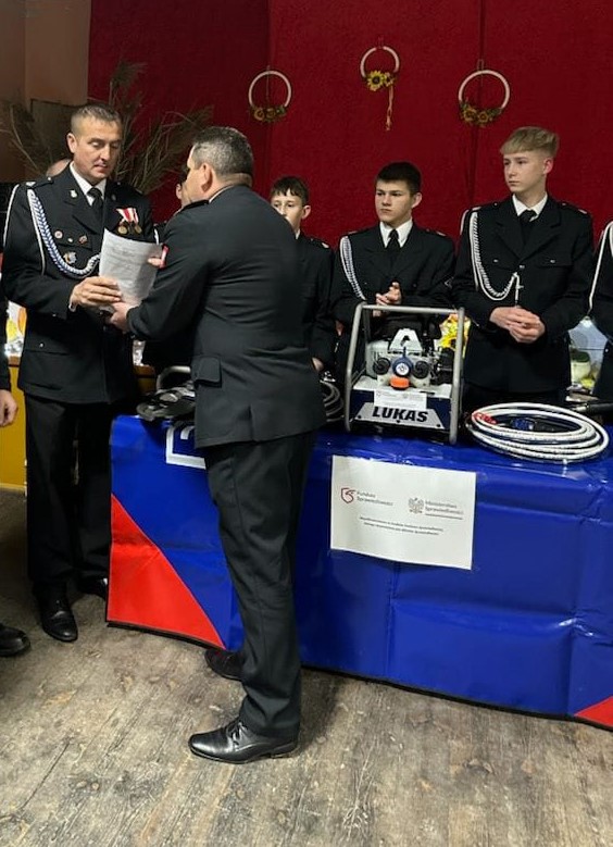PRZEKAZANIE SPRZĘTU RATOWNICZEGO DLA JEDNOSTKI OCHOTNICZEJ STRAŻY POŻARNEJ W DZIERĄŻNI – POWIAT PIŃCZOWSKI