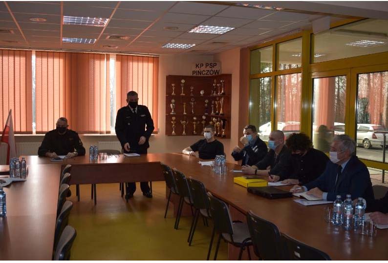 W dniu 11.01.2022 roku w siedzibie tutejszej Komendy odbyło się spotkanie robocze mające na celu omówienia Ustawy o Ochotniczych Strażach Pożarnych, która obowiązuje od dnia 1.01.2022 r. W zebraniu udział wzięli Burmistrzowie, Wójtowie, pracownicy Urzędów Gmin realizujący sprawy ochrony przeciwpożarowej oraz Prezesi Zarządów Gminnych OSP. Głównym tematem spotkania było omówienie zagadnień wypłat świadczeń ratowniczych dla druhów OSP spełniających wymagania nałożone Ustawą. Następnie Komendant Powiatowy PSP w Pińczowie podziękował wszystkim druhom OSP za udział w działaniach ratowniczych w 2021 roku oraz przedstawił plan zadań przewidzianych do realizacji w 2022 roku.