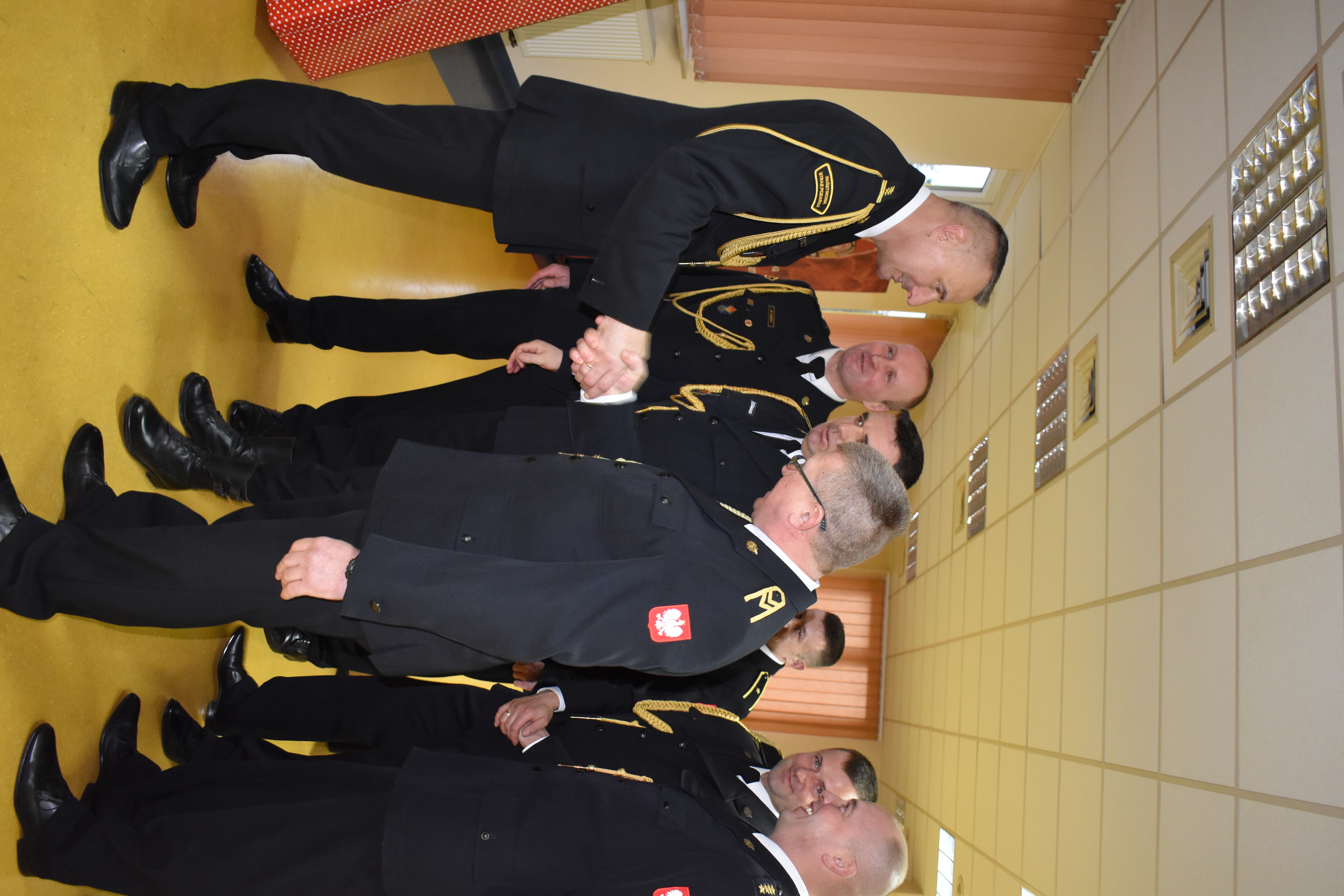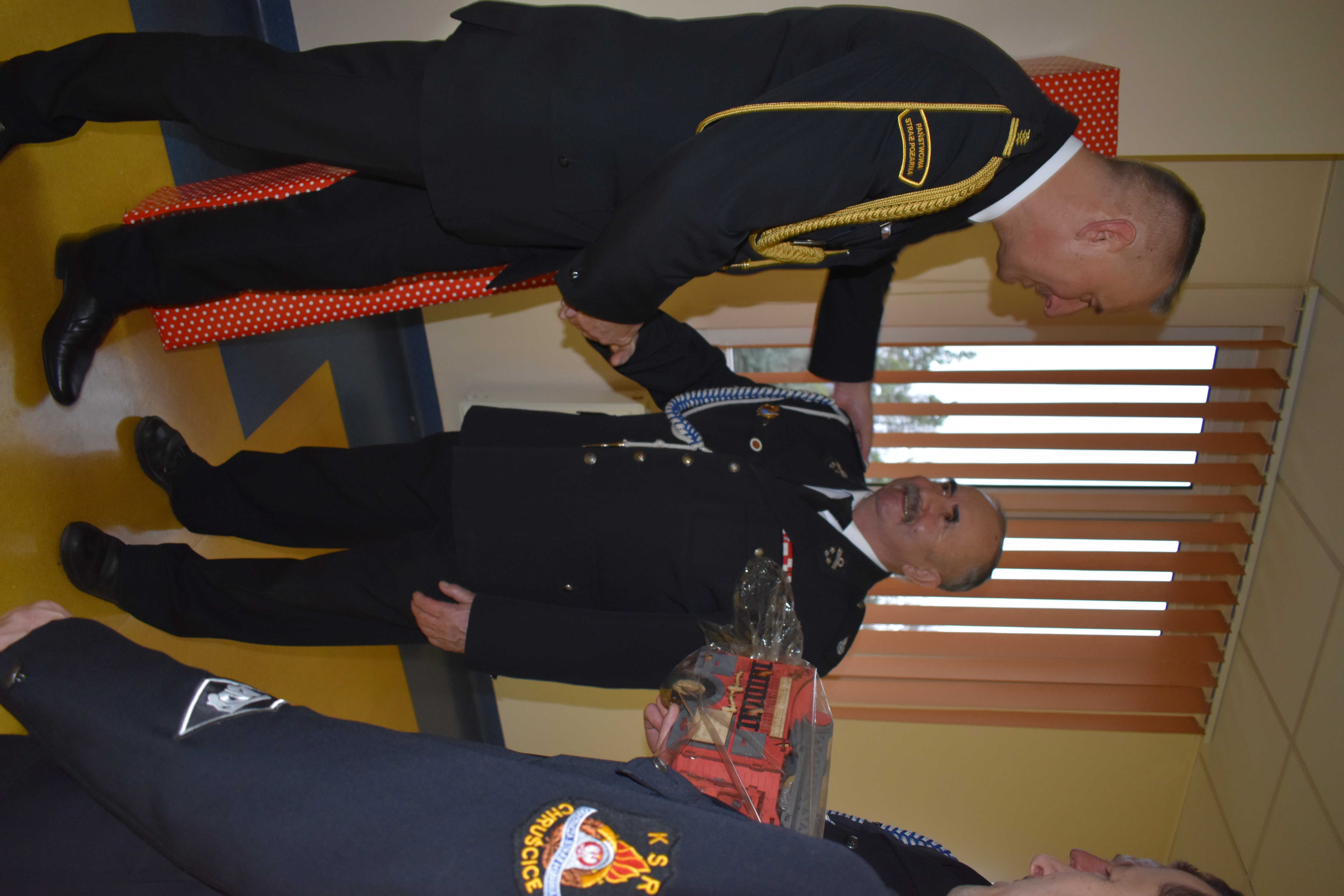 Następnym punktem uroczystości było zabranie głosu przez zdającego obowiązki i odchodzącego na zaopatrzenie emerytalne komendanta st. bryg. Jarosława Huka, który w swoim wystąpieniu podziękował przełożonym, podwładnym oraz przedstawicielom samorządu terytorialnego za dotychczasową współpracę gratulując jednocześnie swojemu dotychczasowemu zastępcy awansu.