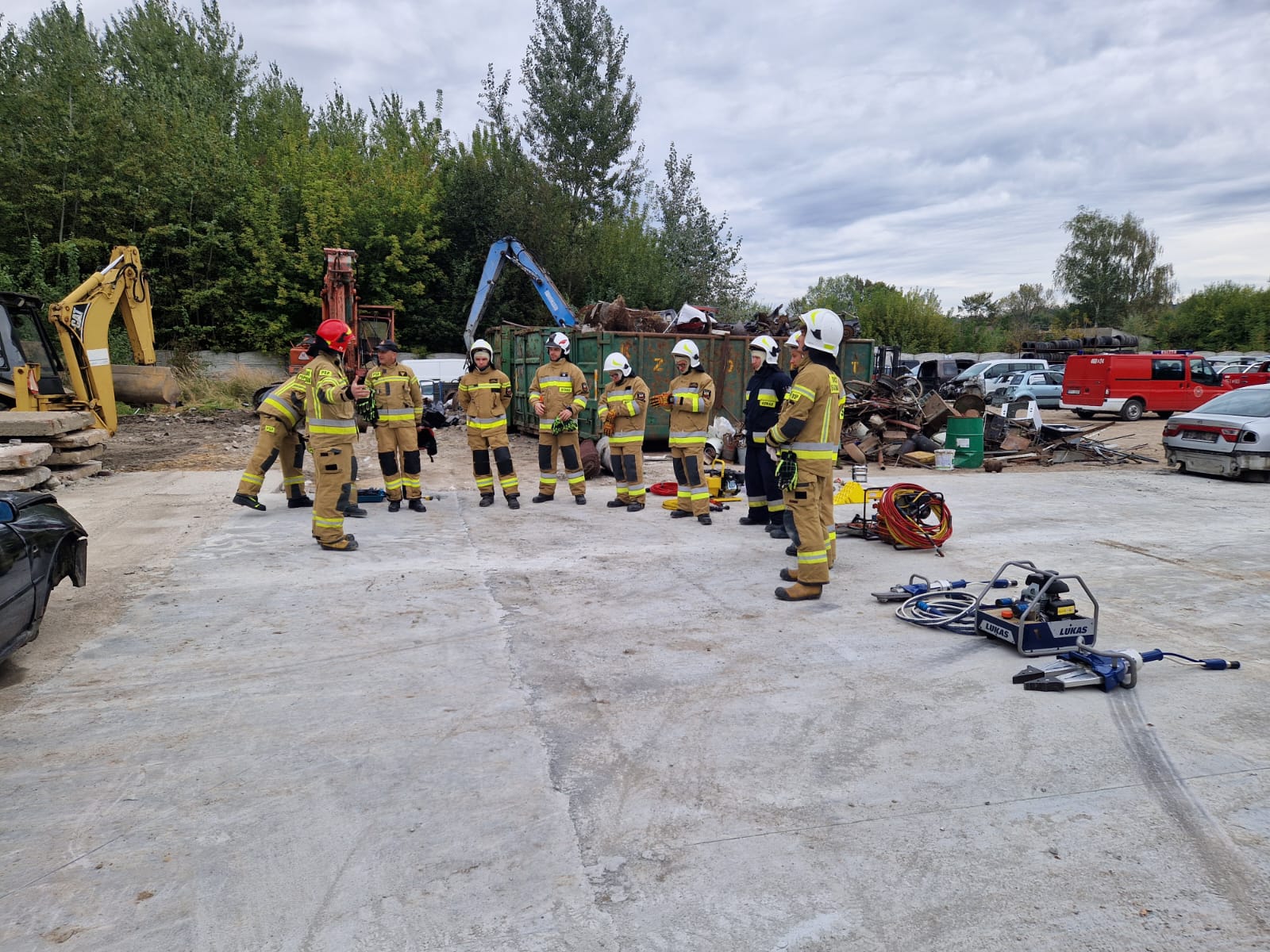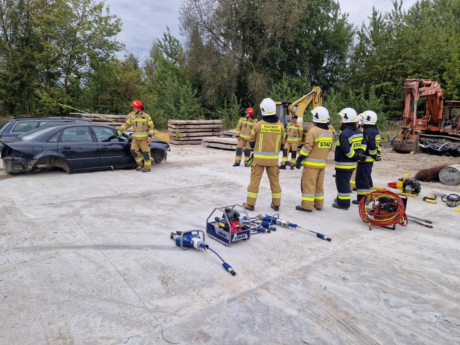 W dniach od 2 do 4 października 2024 roku na terenie stacji demontażu pojazdów w Dziekanowicach, gm. Działoszyce odbyły się ćwiczenia w formie warsztatów doskonalących dla strażaków ratowników jednostek Ochotniczych Straży Pożarnych z terenu powiatu pińczowskiego, posiadających na wyposażeniu ratownicze zestawy hydrauliczne. Zajęcia prowadzili strażacy z Jednostki Ratowniczo – Gaśniczej PSP w Pińczowie na czele z Zastępcą Dowódcy JRG - asp. sztab. Piotr Wojniak, którzy tym samym przekazali wiedzę nabytą podczas ostatniego szkolenia organizowanego przez Ośrodek Szkolenia Komendy Wojewódzkiej PSP w Kielcach (szczegóły: https://www.gov.pl/web/kwpsp-kielce/szkolenie-doskonalace-z-zakresu-ratownictwa-technicznego).