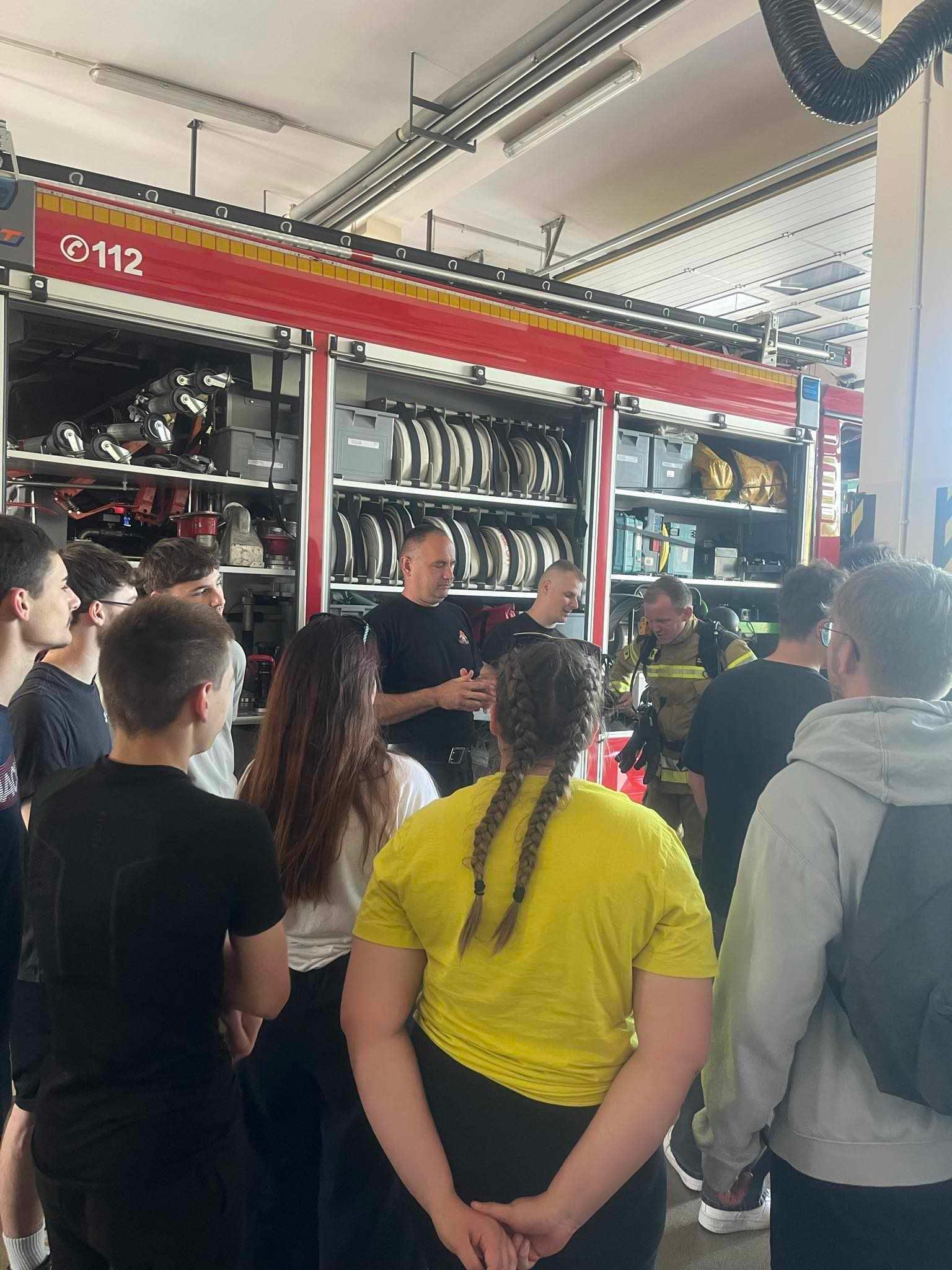 16 maja 2024 r. Komendę Powiatową Państwowej Straży Pożarnej w Pińczowie odwiedziła grupa młodzieży licealnej z Francji, która przebywała gościnnie w Pińczowie w ramach tzw. wymiany uczniów.