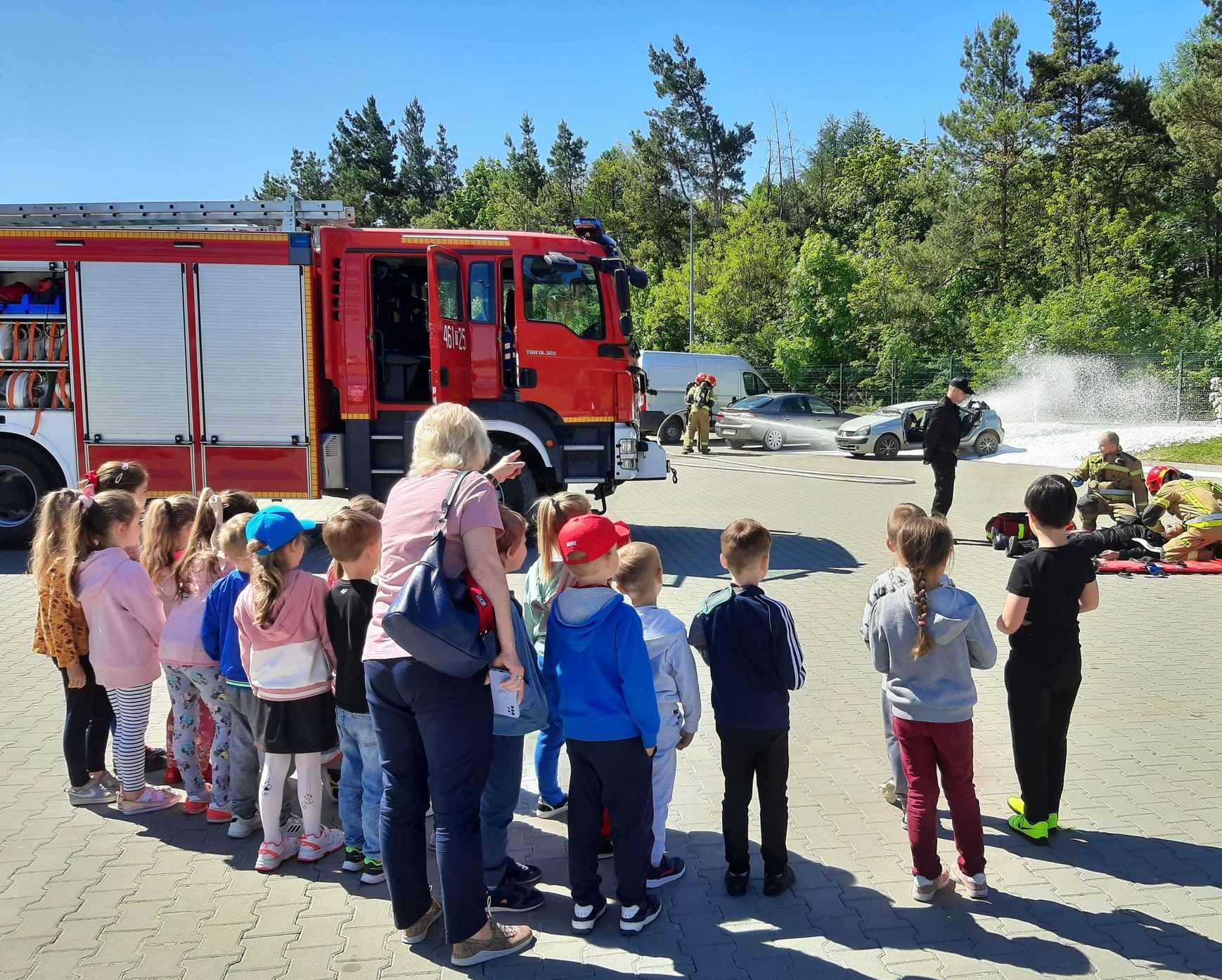 o niebezpieczeństwie. Strażacy zaprezentowali także nowoczesny sprzęt jakim dysponuje Jednostka Ratowniczo-Gaśnicza PSP w Pińczowie oraz wykonali próbny alarm bojowy połączony z pokazem ratownictwa drogowego, co spotkało się z dużym uznaniem obserwatorów.