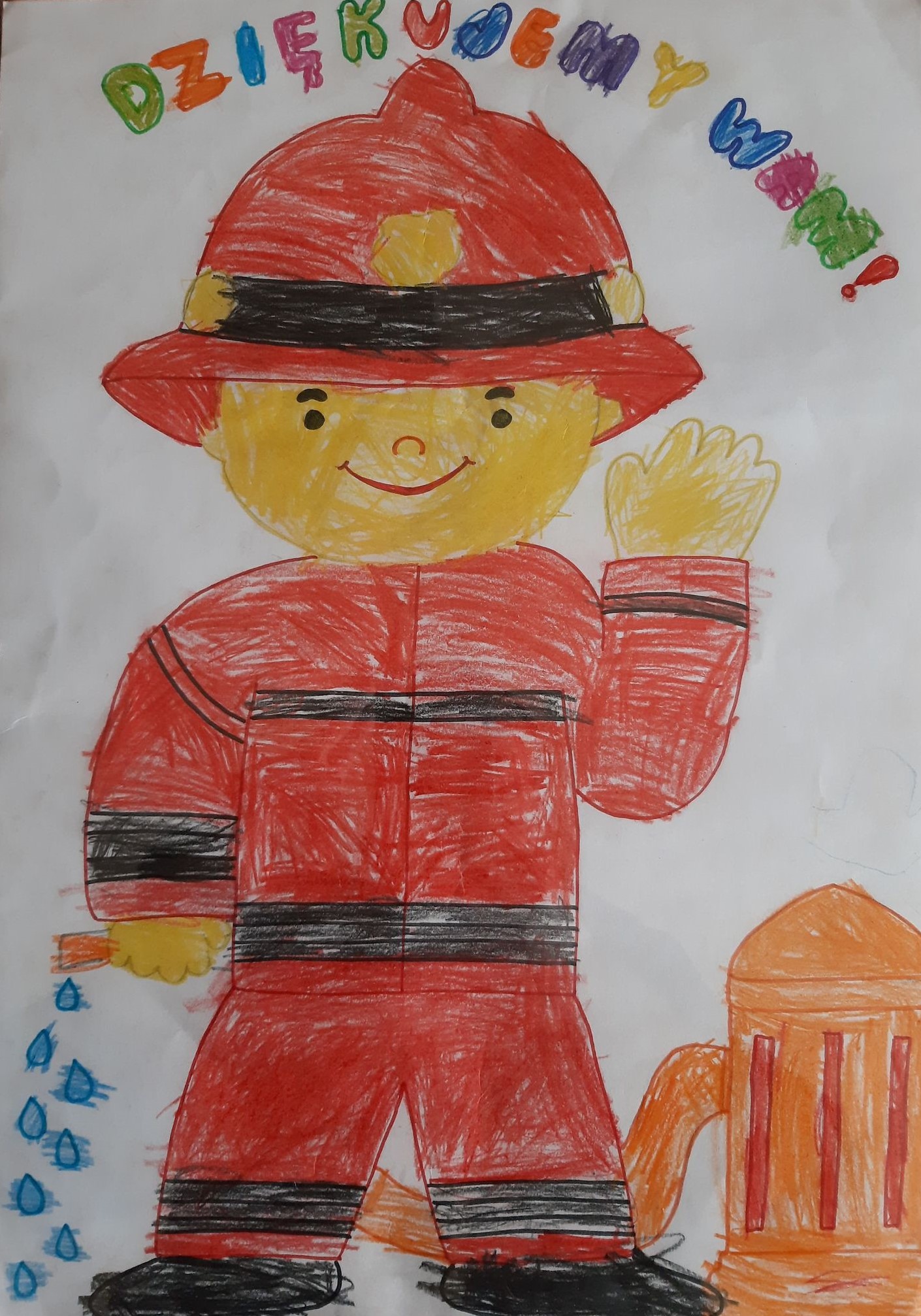 W podziękowaniu za wizytę przedszkolaki podarowały strażakom pamiątkowy rysunek.