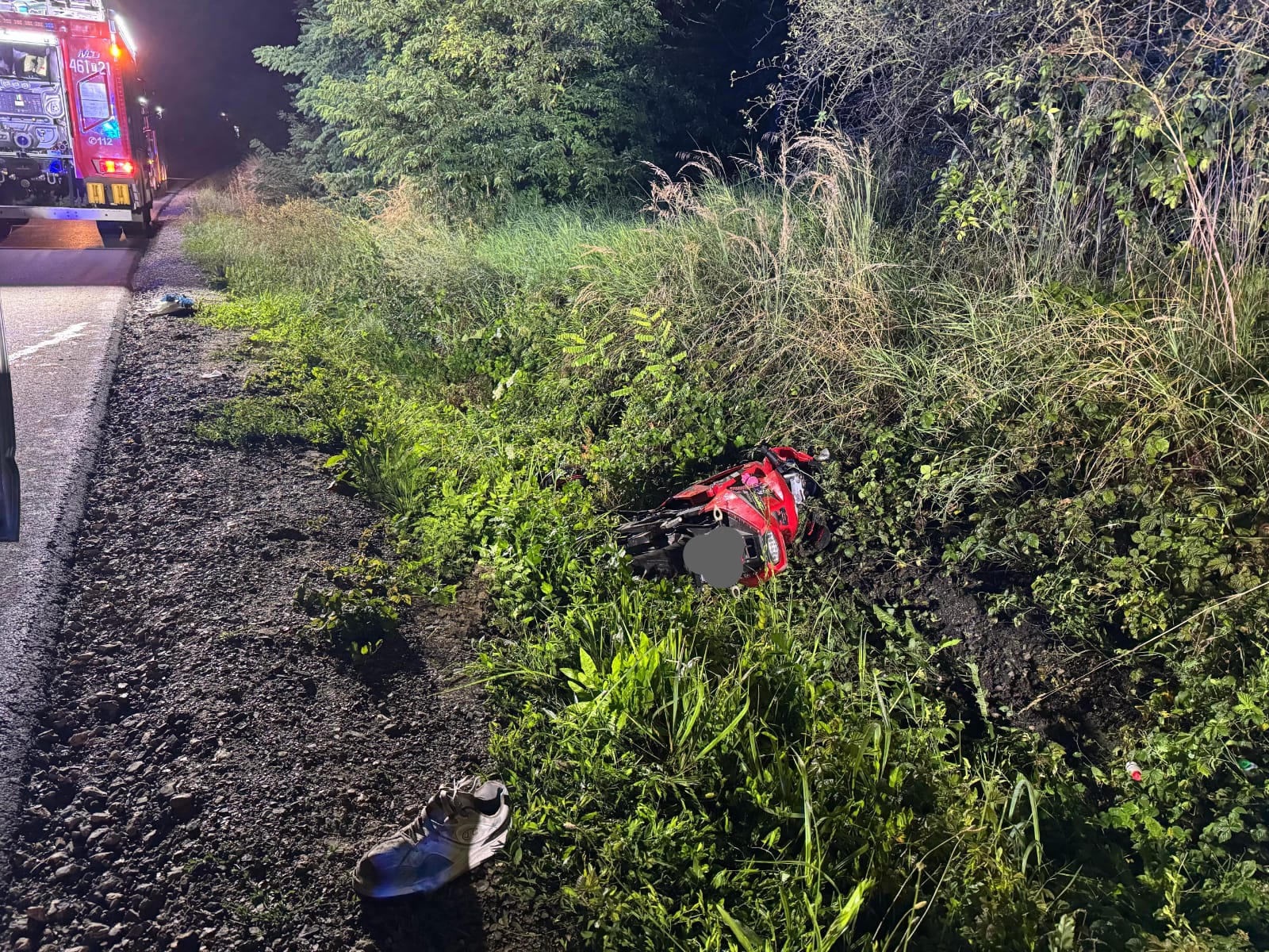 Po przybyciu na miejsce zdarzenia Kierujący Działaniem Ratowniczym ustalił, że doszło do zderzenia samochodu osobowego, którymi podróżowały dwie osoby, w tym jedna niepełnoletnia, z motorowerem, który prowadziła osoba poniżej 18 roku życia. Osoby poruszające się autem osobowym nie doznały obrażeń, kierujący jednośladem znajdował się pod opieką ZRM. Działania strażaków polegały na zabezpieczeniu i oświetleniu miejsca zdarzenia i miejsca lądowiska śmigłowca LPR oraz odłączeniu źródeł zasilania elektrycznego w pojazdach. Poszkodowany został zabrany śmigłowcem do szpitala w Krakowie. W działaniach brały udział trzy patrole Policji oraz Zespół Ratownictwa Medycznego i Lotnicze Pogotowie Ratunkowe. W działaniach ratowniczych udział brało w sumie 14 strażaków ratowników PSP i OSP.