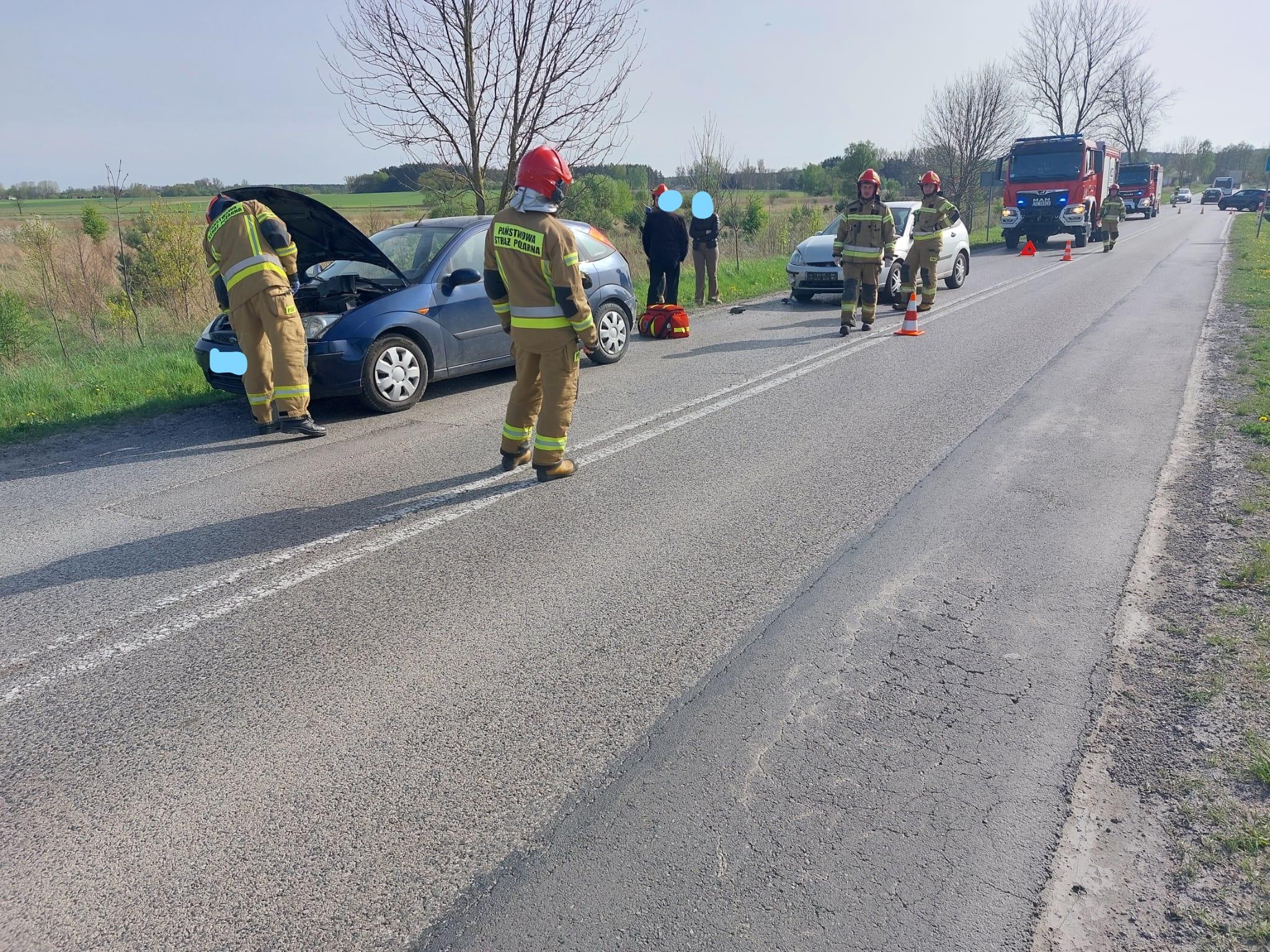 Po przybyciu na miejsce zdarzenia Kierujący Działaniem Ratowniczym ustalił, że doszło do zderzenia pojazdów na skutek najechania na siebie kolejno trzech samochodów. Auta znajdowały się na jednym pasie ruchu, w pozycji na kołach. Podróżowały nimi łącznie cztery osoby, które wyszły z pojazdów o własnych siłach przed przybyciem służb ratowniczych. Działania strażaków polegały na zabezpieczeniu miejsca zdarzenia oraz odłączeniu źródła zasilania elektrycznego we wszystkich pojazdach. Podczas zdarzenia nie było osób rannych. W działaniach brał udział patrol Policji oraz Zespół Ratownictwa Medycznego. Ruch na drodze w trakcie działań ratowniczych odbywał się wahadłowo.