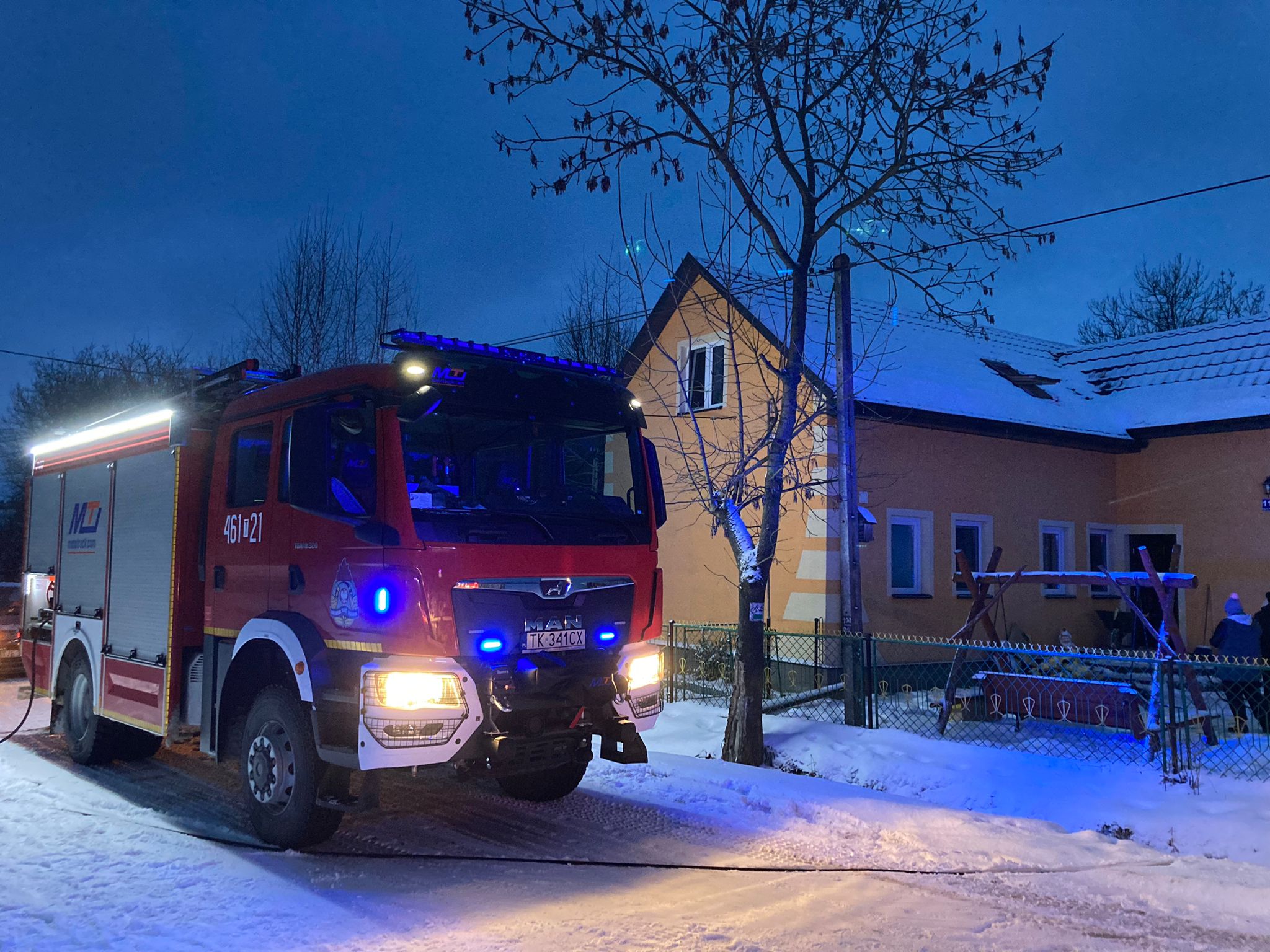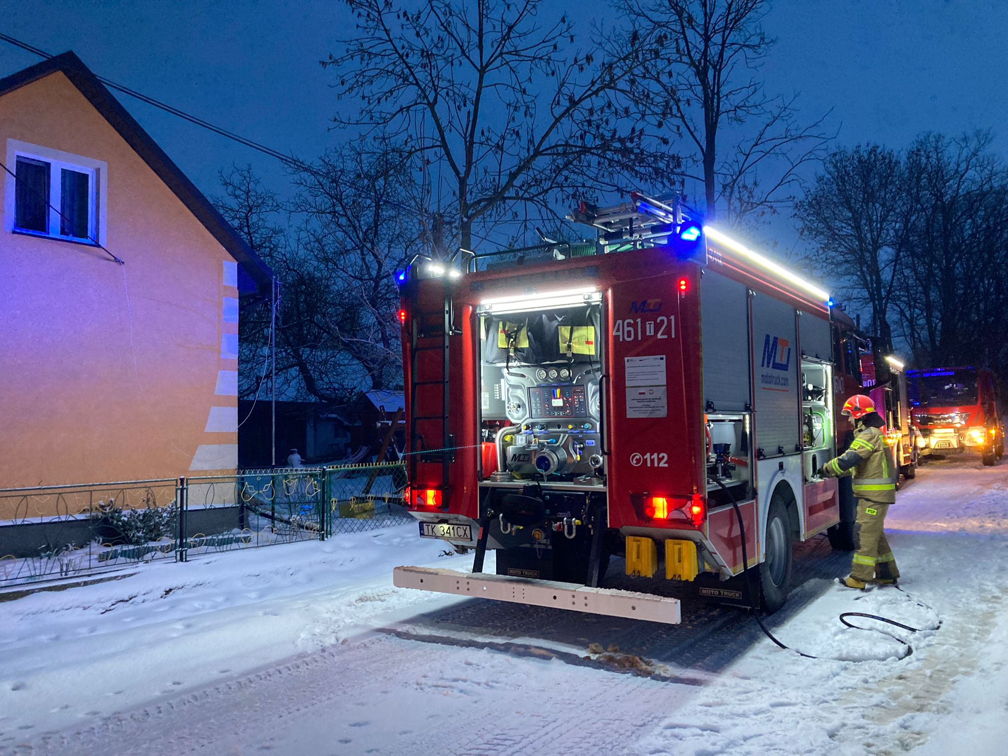 19 stycznia 2024 r. o godz. 6.04 do stanowiska kierowania komendanta powiatowego PSP w Pińczowie wpłynęło zgłoszenie o pożarze w budynku mieszkalnym konstrukcji drewnianej, w miejscowości Zagaje Dębiańskie, gmina Działoszyce. Do zdarzenia zadysponowano zastęp z pińczowskiej Jednostki Ratowniczo-Gaśniczej PSP oraz dwa zastępy z Jednostek Ochotniczych Straży Pożarnych z miejscowości Dzierążnia i Działoszyce. W budynku mieszkała czteroosobowa rodzina (rodzice i dwoje dzieci), którzy w momencie wybuchy pożaru spali. Domowników obudził alarm z czujki dymu i w porę ewakuowali się na zewnątrz budynku. Po przybyciu na miejsce zdarzenia Kierujący Działaniem Ratowniczym ustalił, iż pożarem objęte są ściany działowe dwóch pomieszczeń oraz ściana zewnętrzna drewnianego domu. Strażacy po zabezpieczeniu miejsca zdarzenia dokonali częściowej rozbiórki ścian i sufitu w dwóch pomieszczeniach (kuchnia i łazienka) i podali prąd wody w natarciu na pożar. Drugi prąd wody, przy użyciu lancy kominowej, podano do przewodu kominowego, gdyż ustalono przy pomocy kamery termowizyjnej pożar sadzy. Po zakończeniu działań gaśniczych teren pożaru sprawdzono przy użyciu kamery termowizyjnej i detektorów wielogazowych, które nie wykazały dalszego zagrożenia. Dzięki skutecznym działaniom jednostek ochrony przeciwpożarowej (JOP) uratowano konstrukcję budynku, w którym wystąpił pożar oraz większość pomieszczeń. Na miejscu obecny był patrol policji, który prowadził czynności dochodzeniowe. W działaniach trwających blisko 4 godziny udział wzięło 17 strażaków ratowników. Dzięki zamontowaniu czujki dymu w budynku mieszkalnym nikt nie ucierpiał. Apelujemy, aby wyposażać swoje domy w czujniki tlenku węgla oraz dymu – to naprawdę ratuje życie i zdrowie!