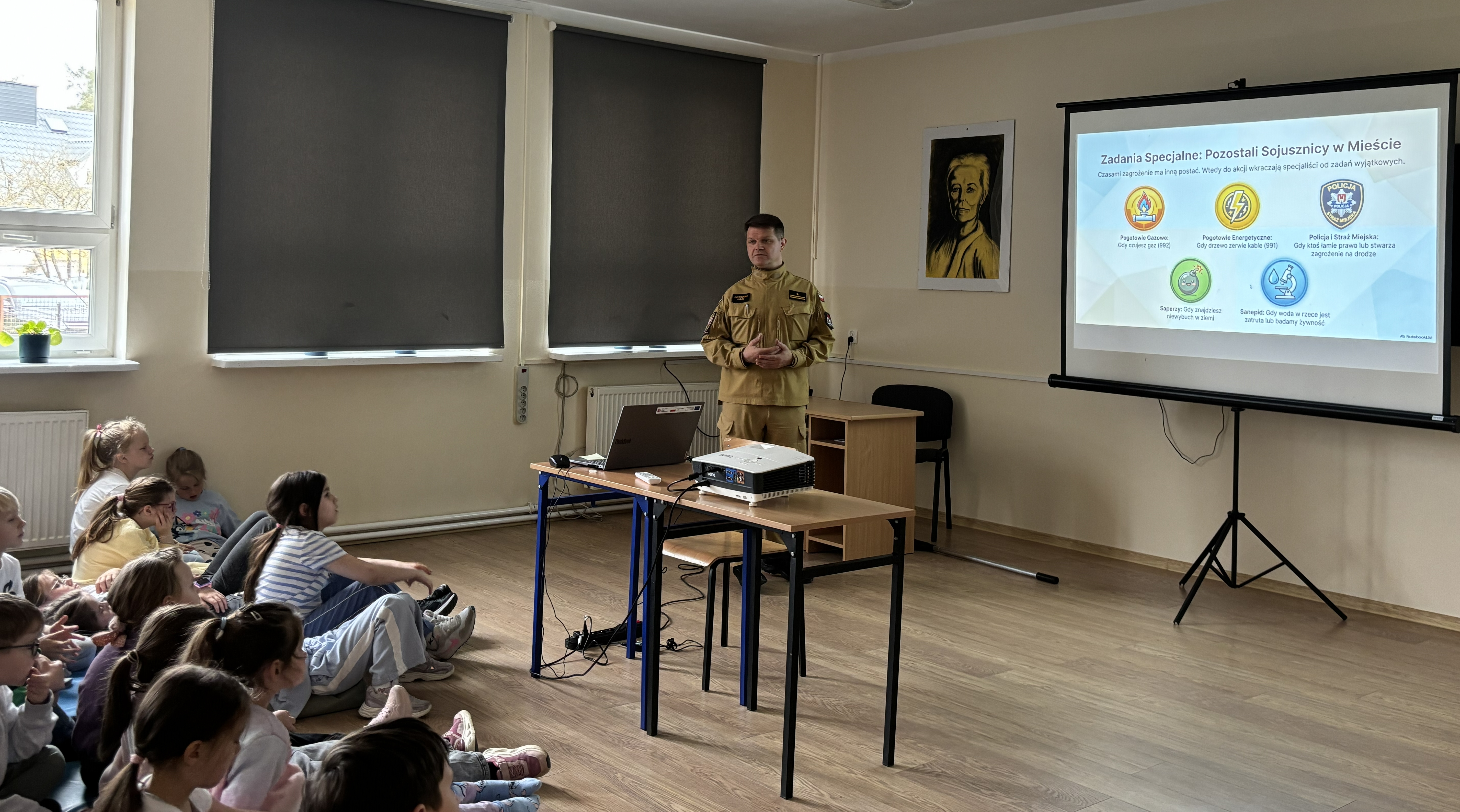 15 kwietnia br. w Szkole Podstawowej nr 1 im. Agnieszki Osieckiej w Rucianem-Nidzie miała miejsce prelekcja skierowana do klas I-III dotycząca zagadnienia związanego z wiosennym wypalaniem traw. Nawiązując do zakrojonej na szeroką skalę akcji „STOP pożarom traw!”, mł. bryg. Grzegorz Kuliś przekazał uczniom garść informacji, których głównym przesłaniem było uświadomienie niebezpieczeństw związanych z wypalaniem traw, a także ukazanie ogromnej ich szkodliwości. Funkcjonariusz zwrócił również uwagę na fakt, że działania gaśnicze związane z palącymi się trawami angażują często znaczne siły jednostek ochrony przeciwpożarowej, które w danej chwili mogłyby być potrzebne do ratowania życia ludzkiego. Uczniowie z przejęciem wysłuchały prelekcji, a filmy przygotowane przez Komendę Główną PSP przyprawiły je o wypieki na twarzy. Po zakończeniu pokazu mł. bryg. Grzegorz Kuliś omówił zasady przekazywania zgłoszeń alarmowych na numer 112 oraz przedstawił pokrótce pozostałe służby ratownicze działające na terenie Polski, podkreślając ich wyjątkowy charakter, a także niezwykle istotną rolę w systemie ratowniczym naszego kraju.