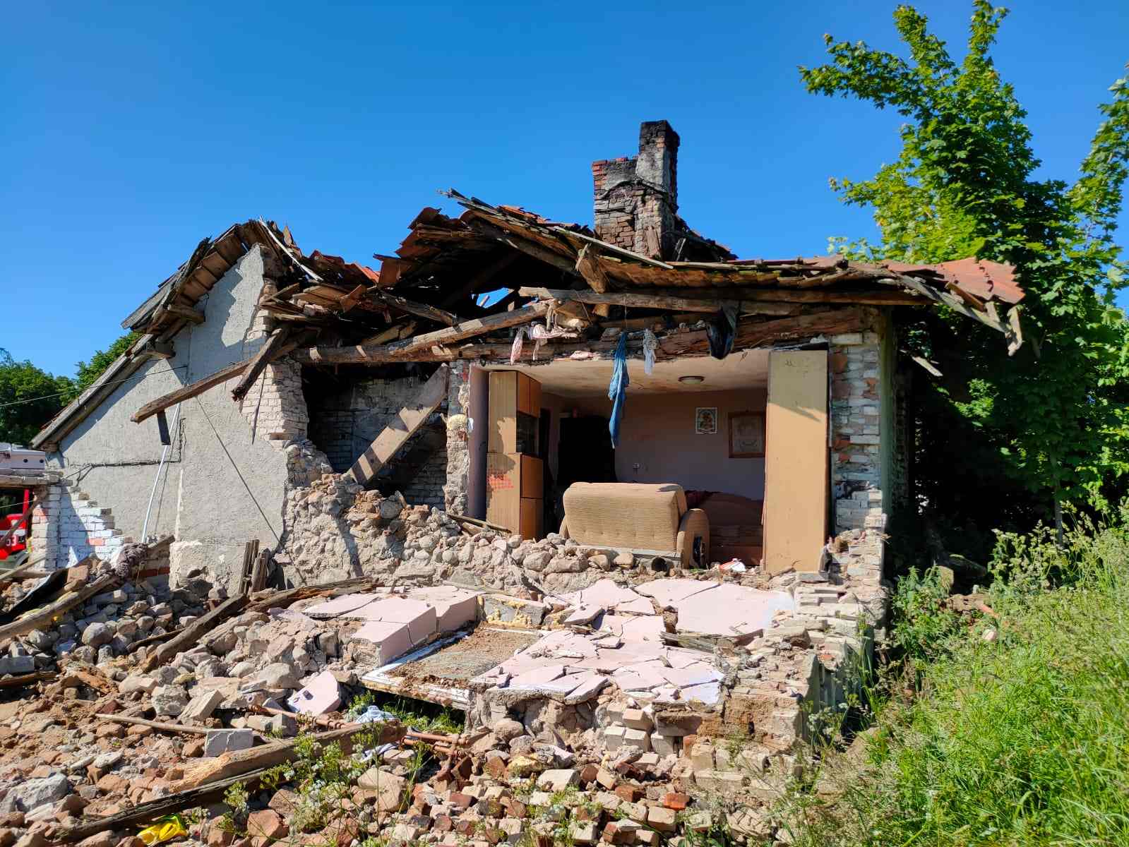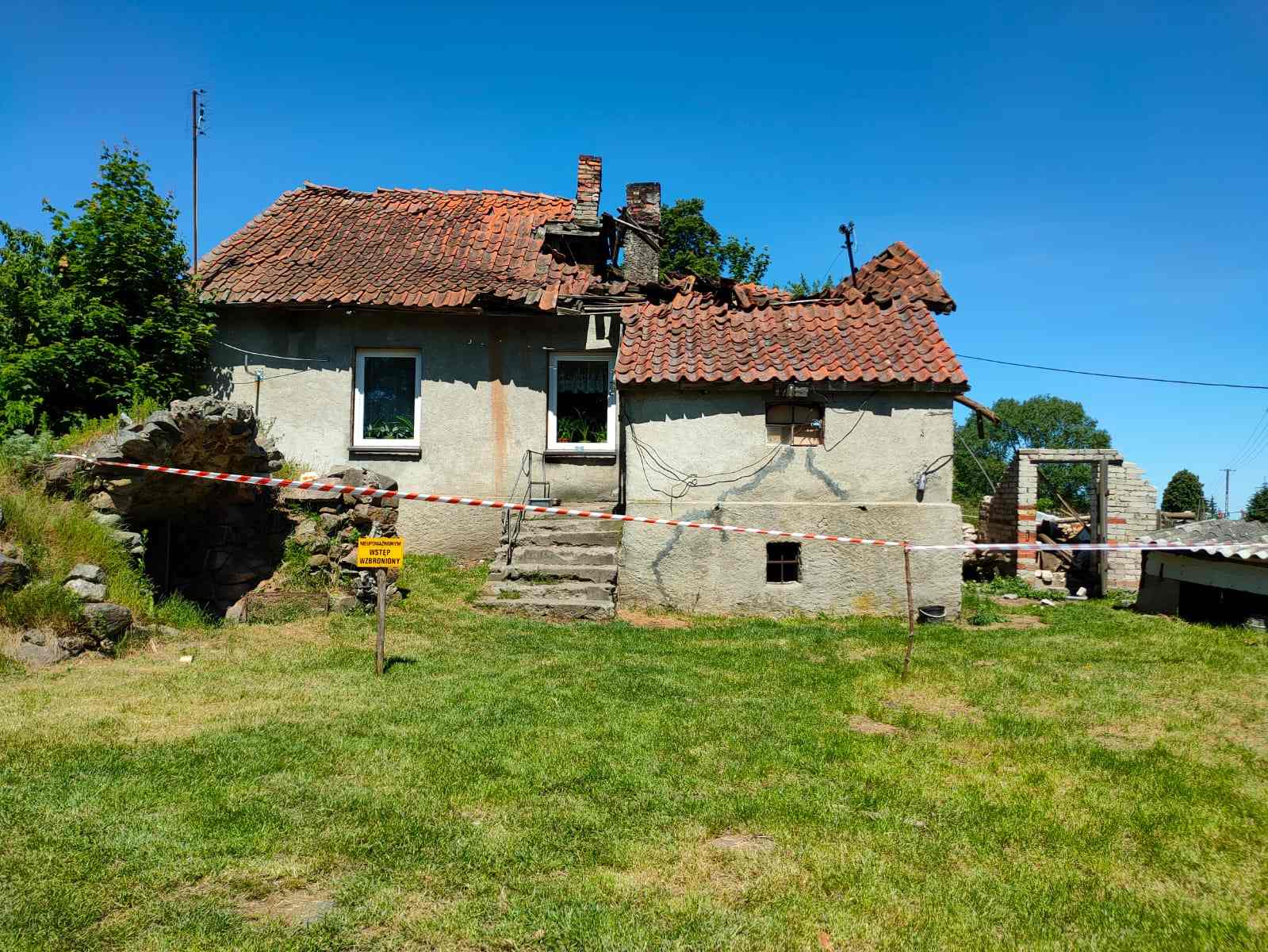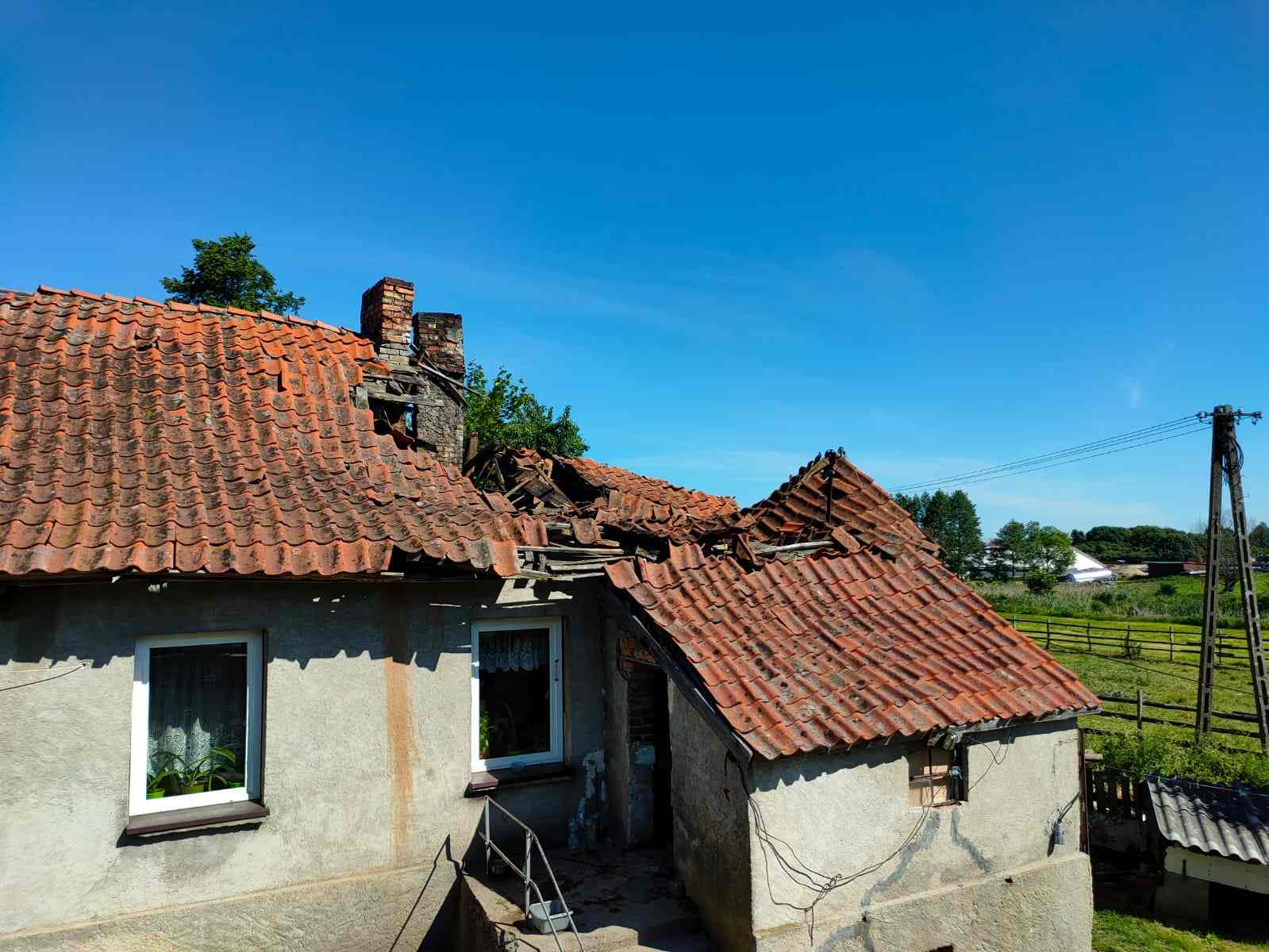 Bełcząc – zawalony dach i ściana szczytowa w budynku mieszkalnym.