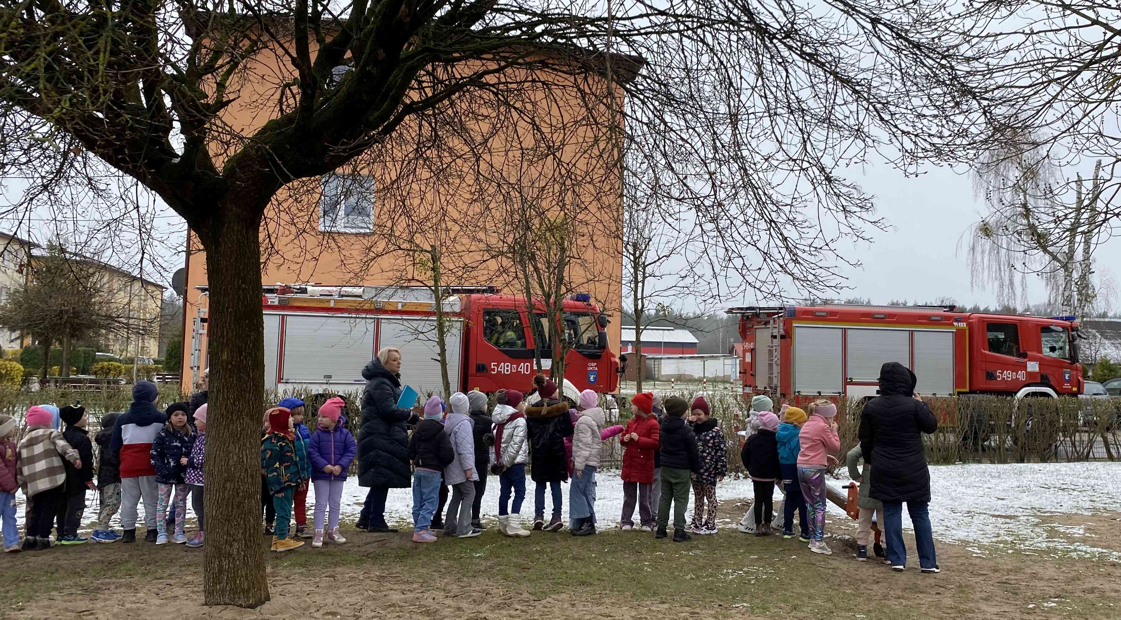 11 kwietnia 2025 roku w Przedszkolu Miejskim „Zielona Kraina” w Rucianem-Nidzie odbyły się ćwiczenia połączone z praktycznym sprawdzeniem warunków i organizacji ewakuacji z obiektu. Organizatorem przedsięwzięcia była Komenda Powiatowa PSP w Piszu we współpracy z Dyrekcją przedszkola. W ćwiczeniach wzięły udział: Jednostka Ratowniczo-Gaśnicza PSP z Pisza oraz jednostki OSP RW z Rucianego-Nidy i OSP z Ukty. Założenie taktyczne polegało na symulowanym pożarze zlokalizowanym na pierwszym piętrze obiektu. Po zakończonych ćwiczeniach dzieci zostały zapoznane z pracą strażaka oraz ze sprzętem strażackim.
