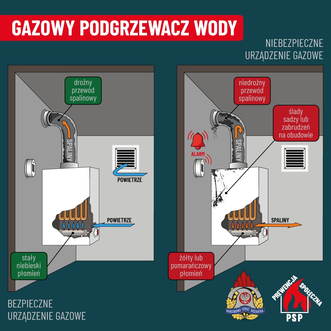 - Państwowa Straż Pożarna zwraca uwagę na fakt, że czujka tlenku węgla nie zastępuje przeglądu technicznego przewodów wentylacyjnych i kominowych.
