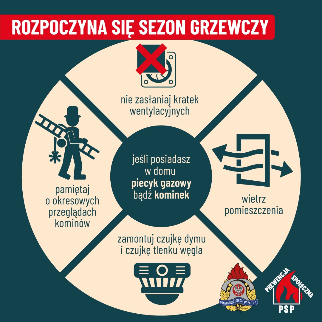 W okresie jesienno-zimowym, w naszym kraju w mieszkaniach i domach jednorodzinnych wzrasta ryzyko powstania pożarów. Najczęściej dochodzi do nich w wyniku wad, albo niewłaściwej eksploatacji urządzeń grzewczych, elektrycznych i gazowych. W tym samym okresie odnotowywany jest także wzrost liczby zatruć tlenkiem węgla, zwanym "cichym zabójcą", gdyż jest niewidoczny oraz nie ma smaku, ani zapachu.