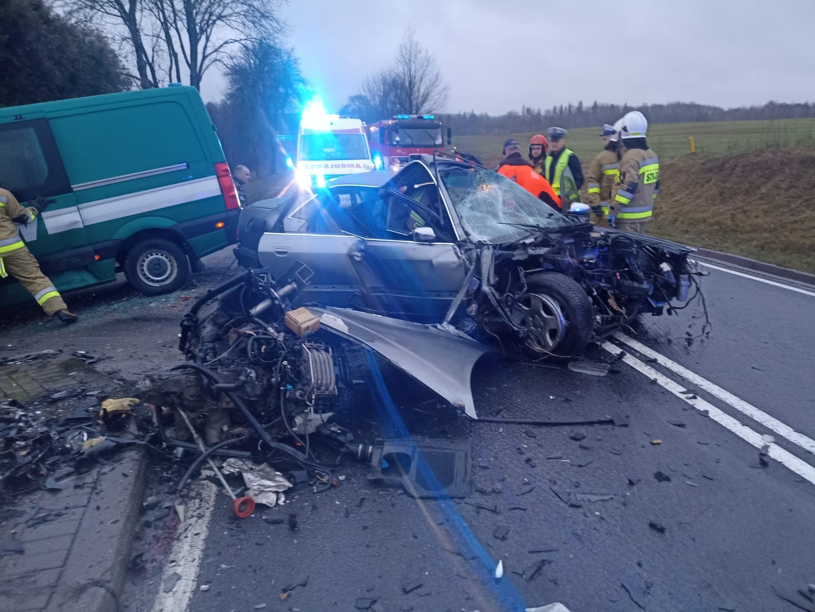 17 grudnia 2023 r., o godz. 07:38, do Stanowiska Kierowania Komendanta Powiatowego w Piszu wpłynęło zgłoszenie o wypadku na drodze krajowej nr 58, na trasie Pisz – Biała Piska, na wysokości wsi Kocioł Duży. Po przybyciu na miejsce zdarzenia jednostek straży pożarnej stwierdzono zderzenie samochodu osobowego marki Audi A8 z busem marki VW Crafter Żandarmerii Wojskowej. W zdarzeniu brały udział trzy osoby. W chwili przybycia strażaków kierowca i pasażer busa znajdowali się poza pojazdami. Kierowca samochodu osobowego, znajdował się w pojeździe (niezakleszczony, pod wpływem szoku). Działania straży pożarnej polegały na zabezpieczeniu miejsca zdarzenia, blokując całkowicie przejazd, odłączeniu akumulatorów w pojazdach oraz przetransportowaniu kierowcy pojazdu osobowego do karetki pogotowia. Po przebadaniu przez ZRM wszyscy uczestnicy zdarzenia zostali zabrani do szpitala w Piszu. W działaniach udział brały dwa zastępy z PSP oraz dwa zastępy z OSP, działania ratownicze trwały blisko pięć i pół godziny.