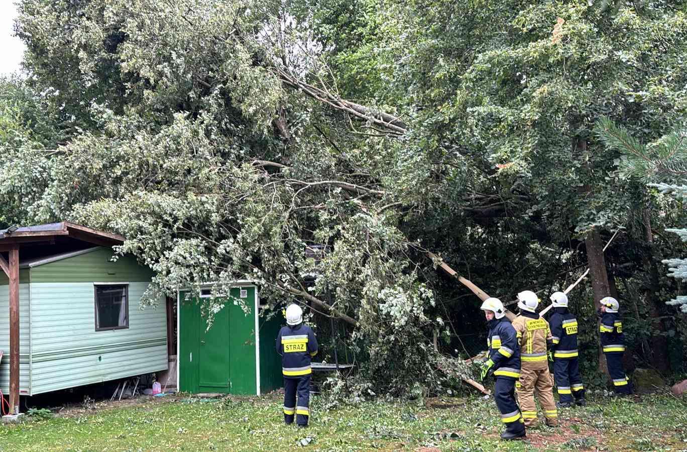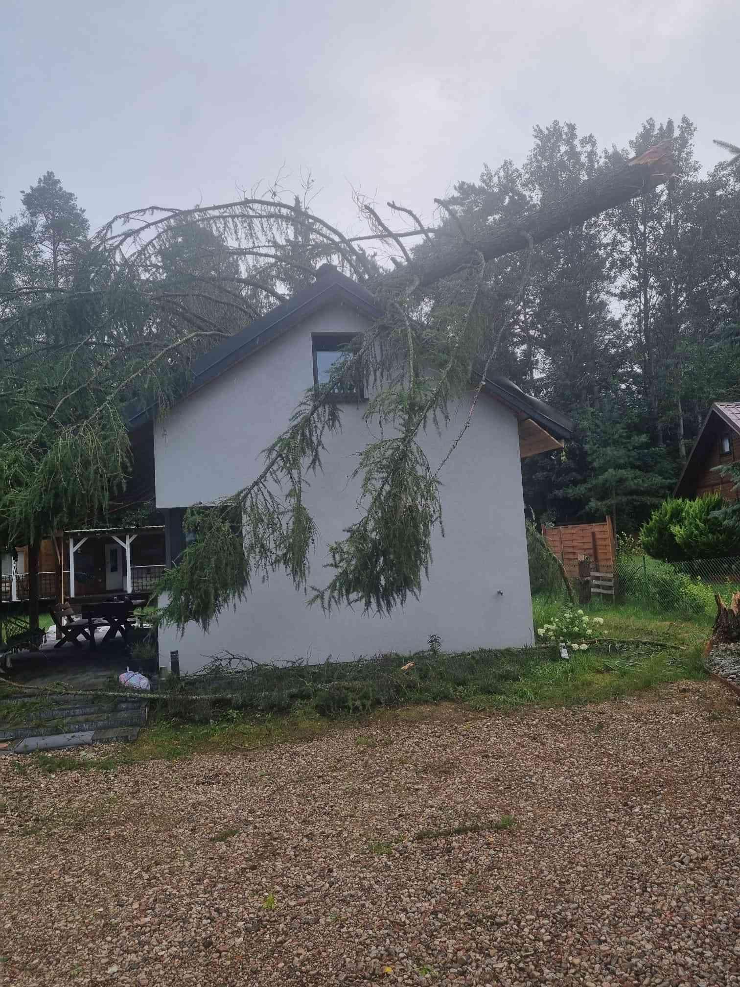 W ubiegłą niedzielę 28.07.2024 r. kolejny front atmosferyczny dokonał zniszczeń w drzewostanie powiatu piskiego. Silny wiatr łamał konary oraz przewracał drzewa, uszkadzając przy tym dachy budynków, pojazdy oraz łódź żaglową. Do groźnego zdarzenia doszło w Ukcie. Jedno z drzew spadło na przystanek autobusowy, uszkadzając jego konstrukcję. Wskutek zdarzenia obrażeń doznał siedzący na przystanku 23-letni mężczyzna uderzony fragmentami bocznej ściany. Poszkodowany z urazem kręgosłupa został zabrany do Szpitala Powiatowego w Piszu. Na jeziorze Bełdany doszło do wywrócenia łodzi żaglowej. Na szczęście nikt nie odniósł obrażeń, cała załoga została podjęta z wody przez MOPR Giżycko. W Jabłoni oraz na Wierzbie spadające drzewa uszkodziły budynki letniskowe. Tutaj szczęśliwie również nikt nie odniósł obrażeń. Łącznie Państwowa Straż Pożarna oraz Ochotnicze Straże Pożarne wyjeżdżały do zdarzeń ponad 80 razy.